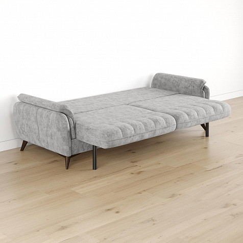 Высокие опоры. Визуально облегчают конструкцию и открывают доступ к уборке пространства под диваном. Диван стоит на 6 опорах, 2 из которых поддерживают выдвижную часть.
