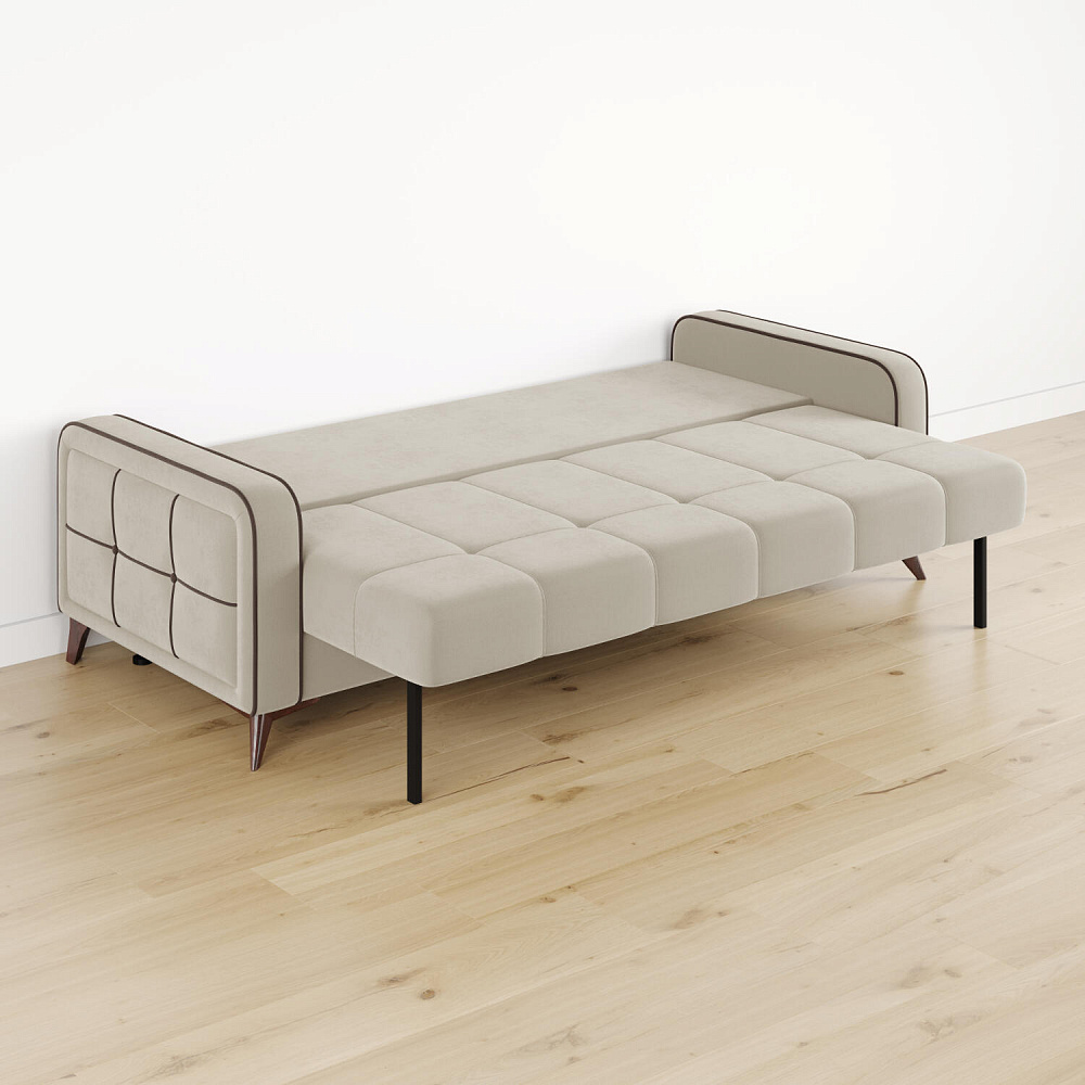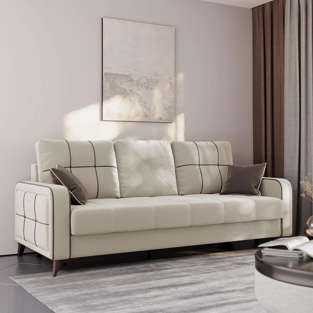 Диван «Престон» преобразит любое помещение. Модель с множеством декоративных элементов сможет не только оживить интерьер, но и полноценно заменить кровать. Под сиденьем предусмотрен широкий ящик для хранения постельных принадлежностей и других вещей.