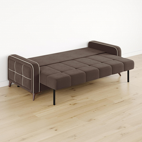 Диван «Престон» преобразит любое помещение. Модель с множеством декоративных элементов сможет не только оживить интерьер, но и полноценно заменить кровать. Под сиденьем предусмотрен широкий ящик для хранения постельных принадлежностей и других вещей.
