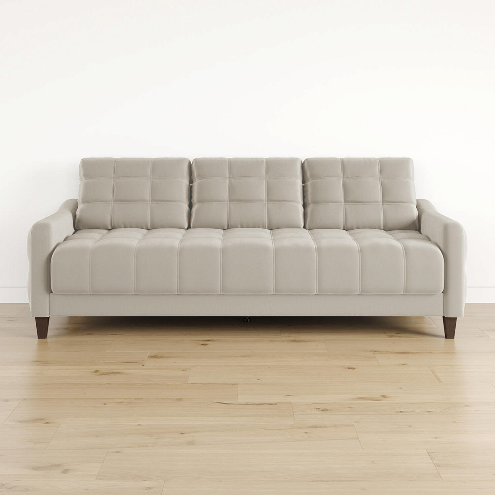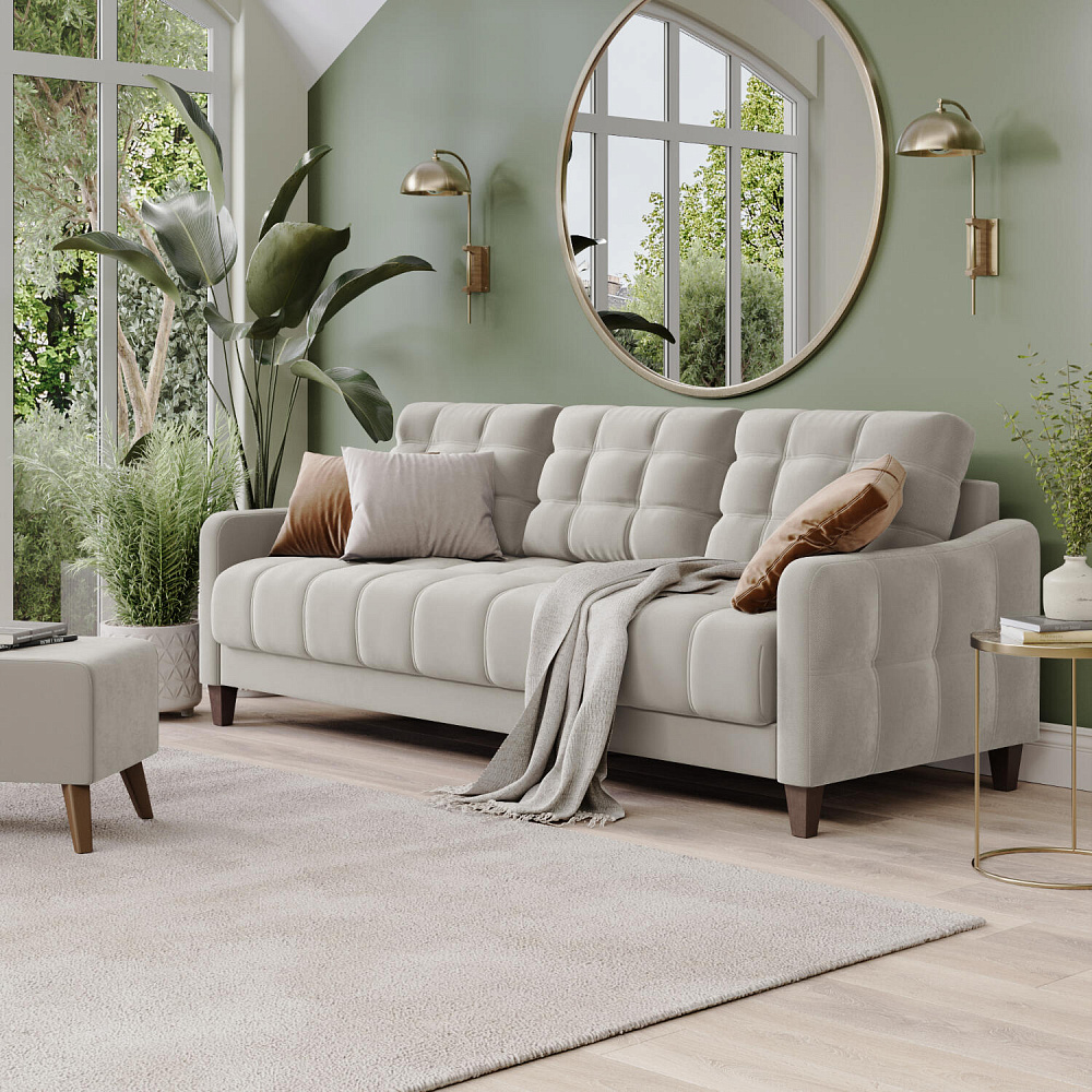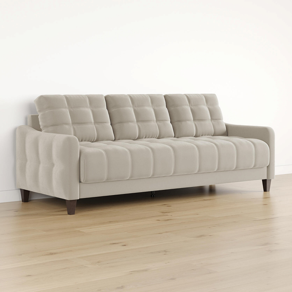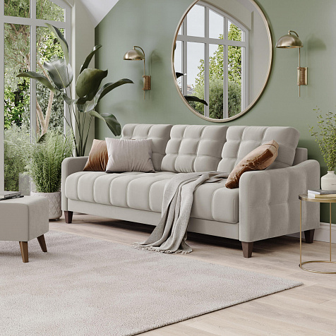 Диван «Бремен» в популярном скандинавском стиле станет функциональным и стильным местом отдыха в доме. Диван с глубокой посадкой оснащён механизмом трансформации и большим бельевым коробом. Высокие опоры и однотонная обивка натурального оттенка добавят в комнату воздуха и лёгкости.