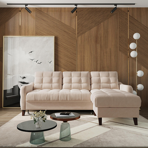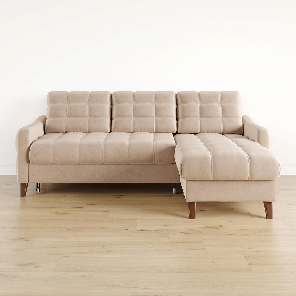 Угловой диван «Бремен» в популярном скандинавском стиле станет функциональным и стильным местом отдыха в доме. Диван с глубокой посадкой оснащён механизмом трансформации и большим бельевым коробом. Высокие опоры и однотонная обивка натурального оттенка добавят в комнату воздуха и лёгкости.