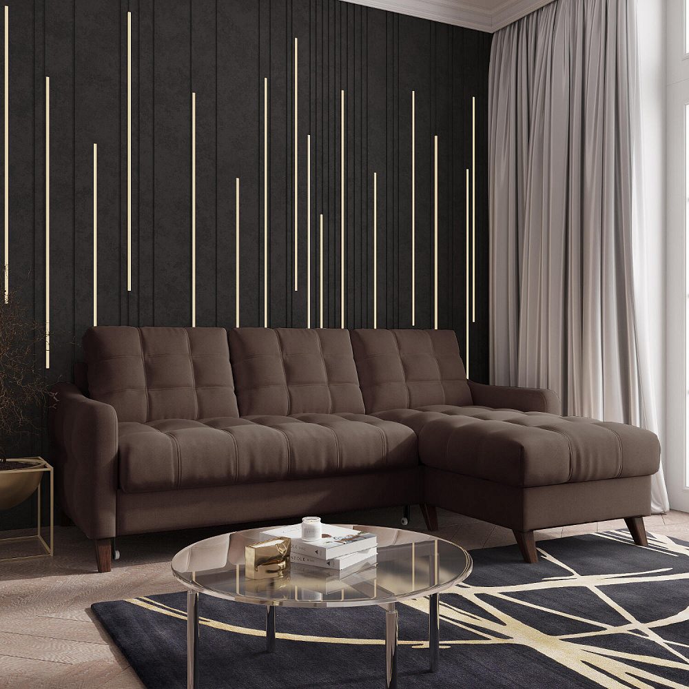 Универсальный угол. Диван подстроится под условия помещения - оттоманка устанавливается как слева, так и справа.