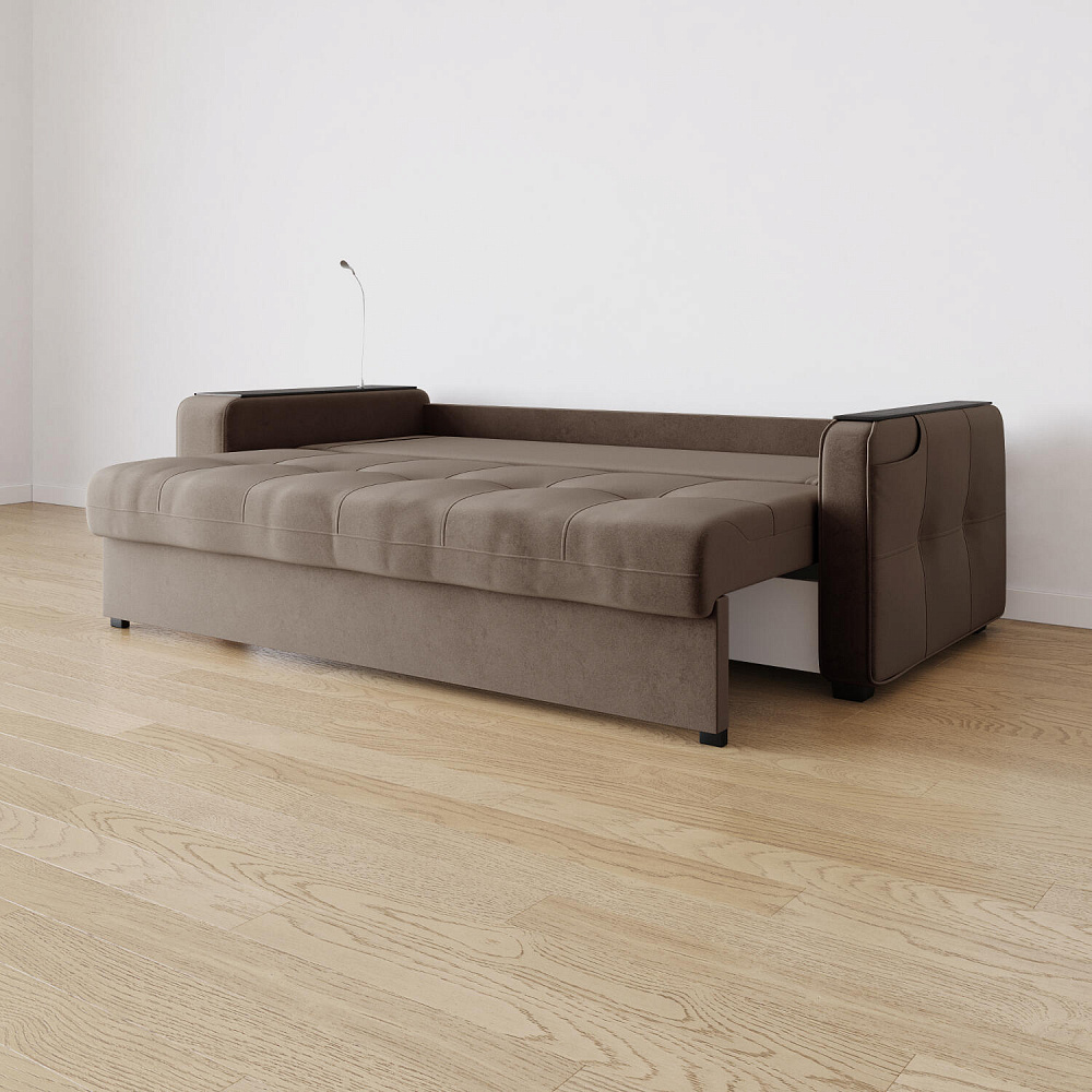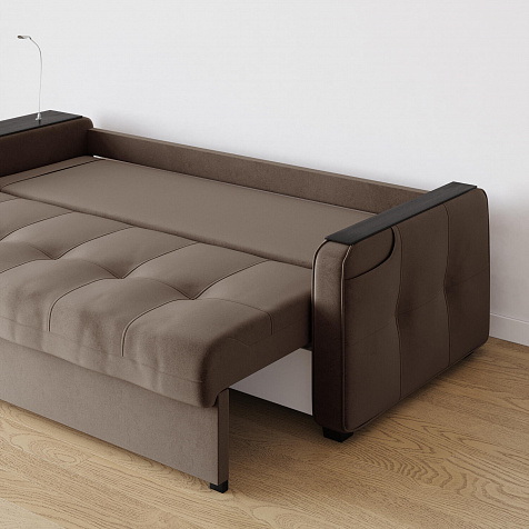 Диван «Киль» подойдёт тем, кто ищет многофункциональную модель для отдыха и работы. Модель со спальным местом и коробом для белья отличается технологичными подлокотниками, портативной лампой в комплекте и встроенным пуфиком. Вдобавок к большому функционалу диван не перегружен декором, поэтому прекрасно подойдёт к большинству современных интерьеров.
