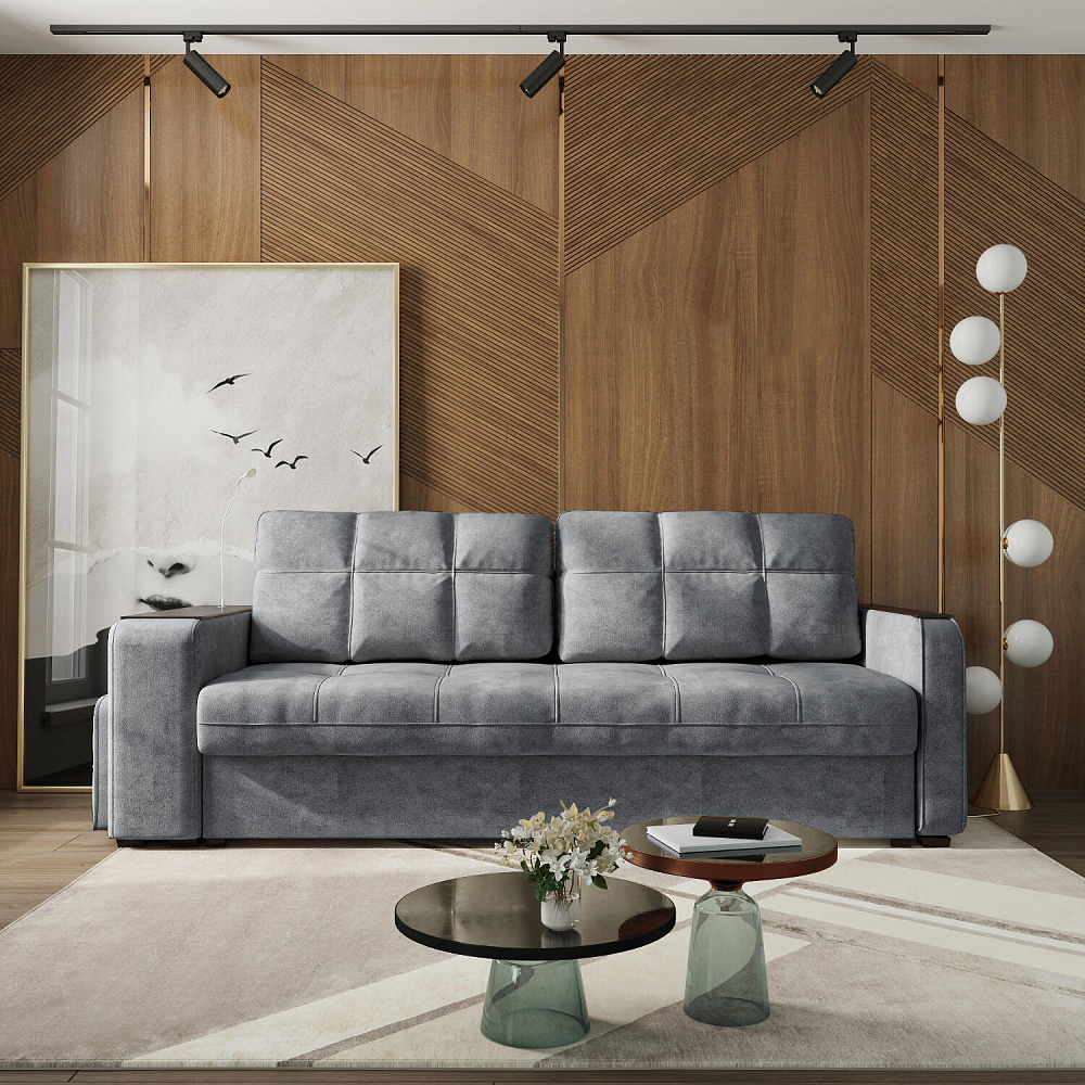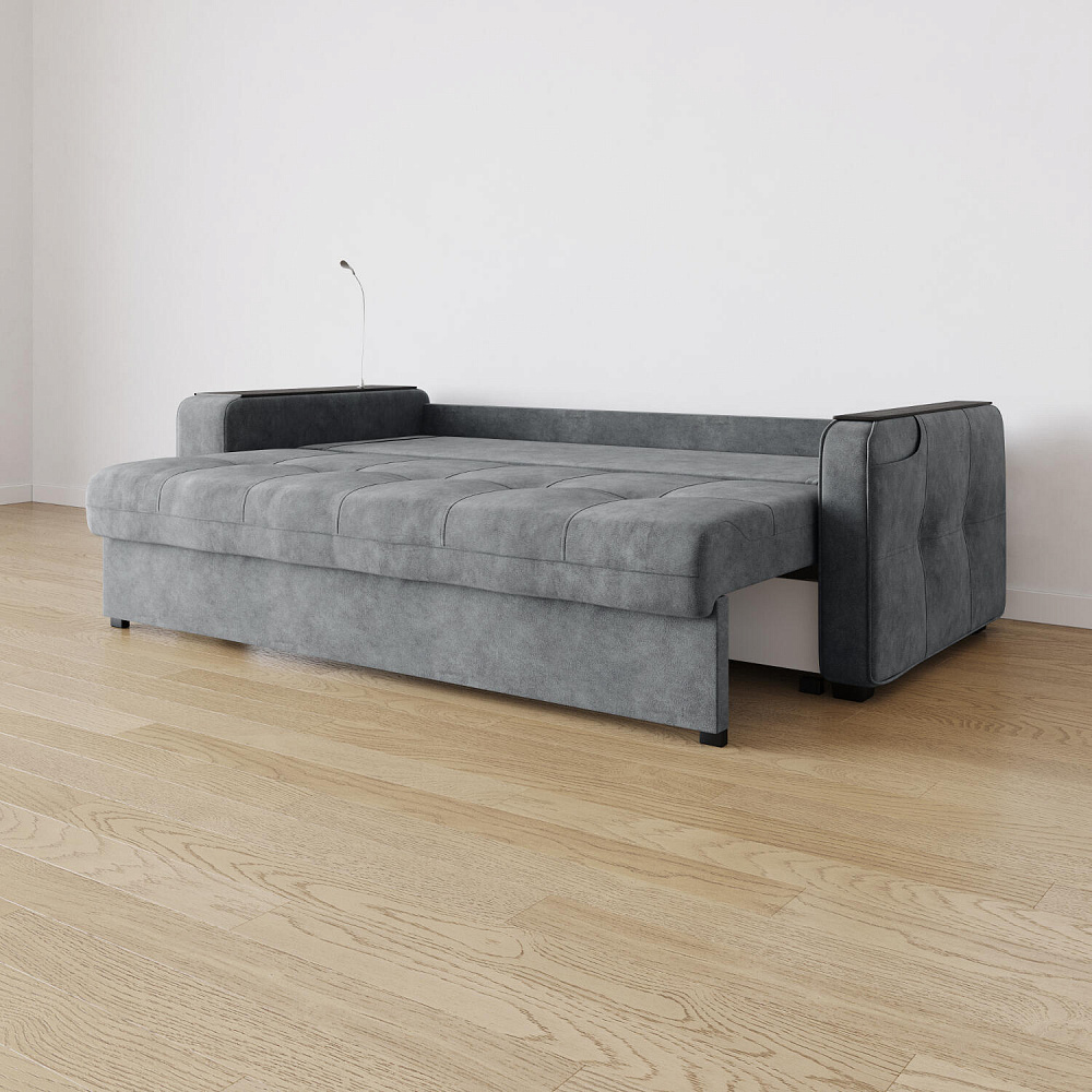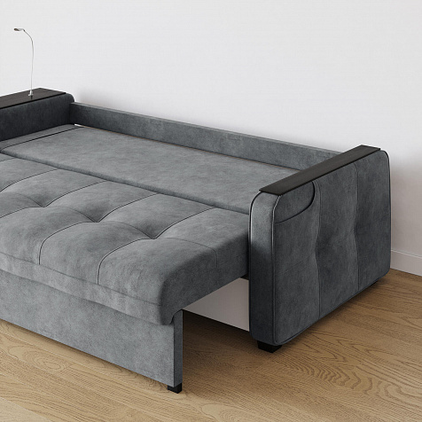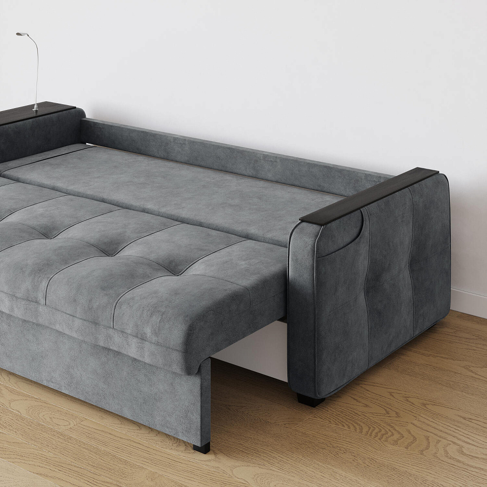 Диван «Киль» подойдёт тем, кто ищет многофункциональную модель для отдыха и работы. Модель со спальным местом и коробом для белья отличается технологичными подлокотниками, портативной лампой в комплекте и встроенным пуфиком. Вдобавок к большому функционалу диван не перегружен декором, поэтому прекрасно подойдёт к большинству современных интерьеров.