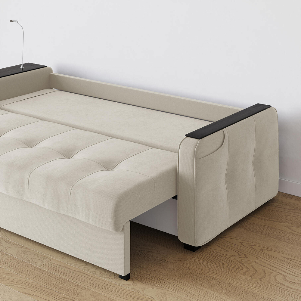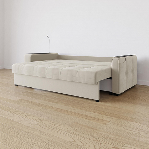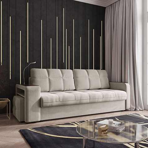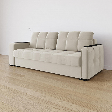 Диван «Киль» подойдёт тем, кто ищет многофункциональную модель для отдыха и работы. Модель со спальным местом и коробом для белья отличается технологичными подлокотниками, портативной лампой в комплекте и встроенным пуфиком. Вдобавок к большому функционалу диван не перегружен декором, поэтому прекрасно подойдёт к большинству современных интерьеров.