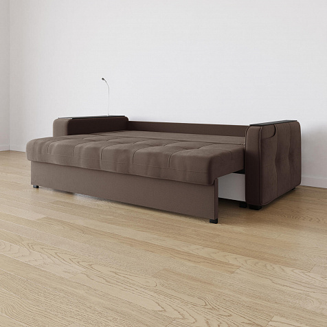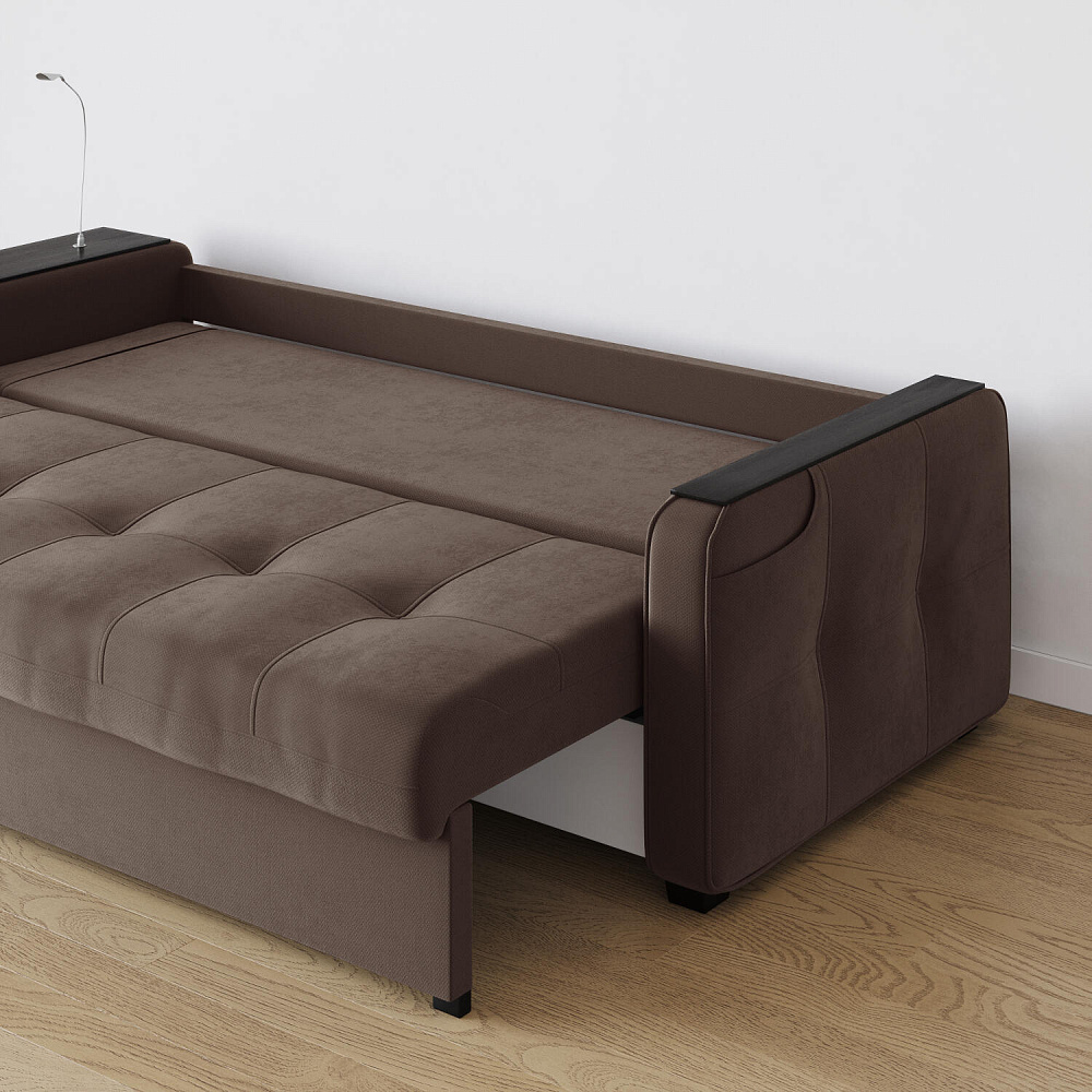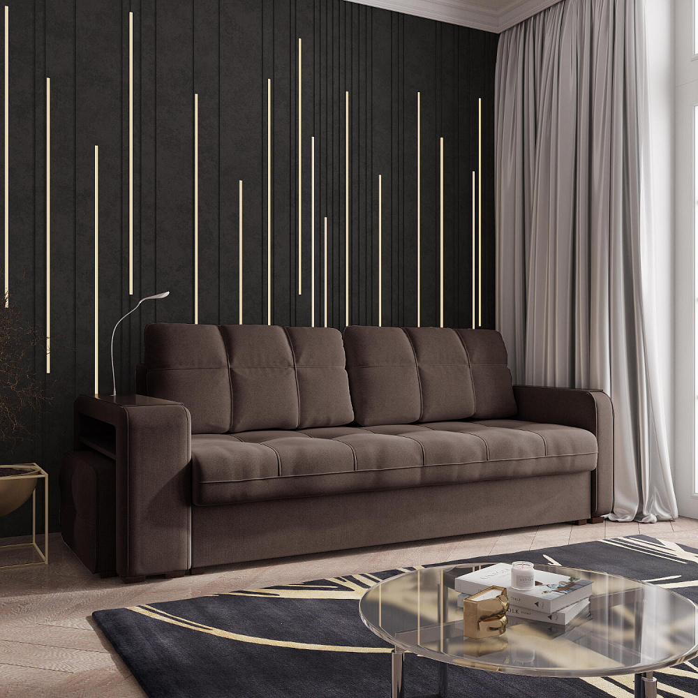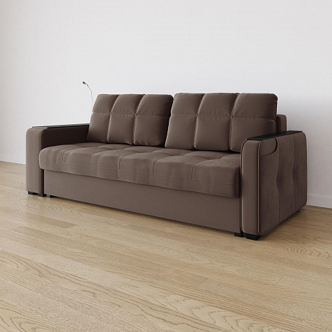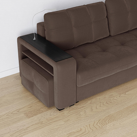 Диван «Киль» подойдёт тем, кто ищет многофункциональную модель для отдыха и работы. Модель со спальным местом и коробом для белья отличается технологичными подлокотниками, портативной лампой в комплекте и встроенным пуфиком. Вдобавок к большому функционалу диван не перегружен декором, поэтому прекрасно подойдёт к большинству современных интерьеров.