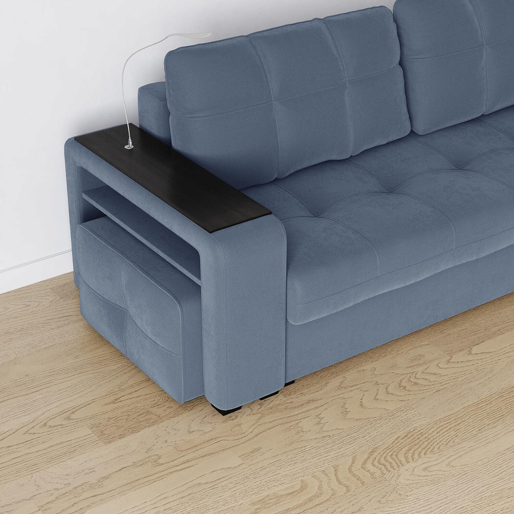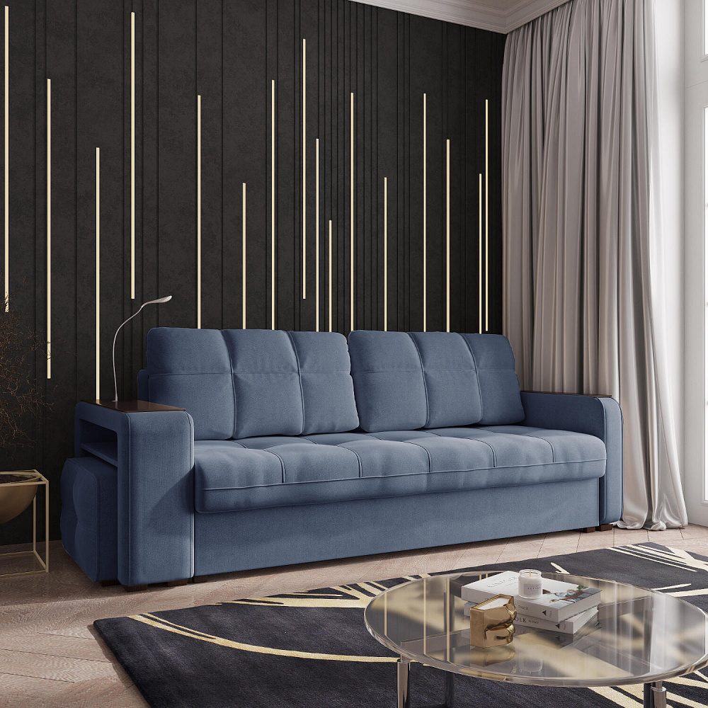 Диван «Киль» подойдёт тем, кто ищет многофункциональную модель для отдыха и работы. Модель со спальным местом и коробом для белья отличается технологичными подлокотниками, портативной лампой в комплекте и встроенным пуфиком. Вдобавок к большому функционалу диван не перегружен декором, поэтому прекрасно подойдёт к большинству современных интерьеров.