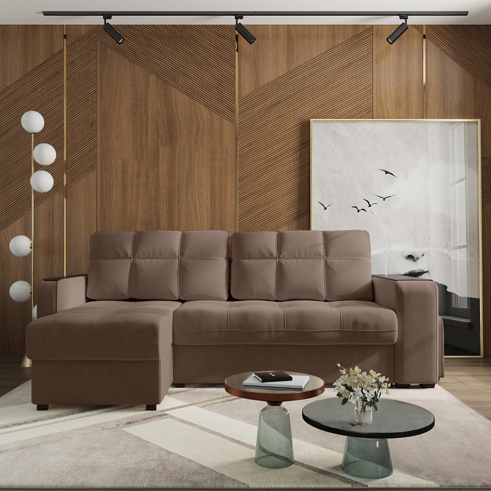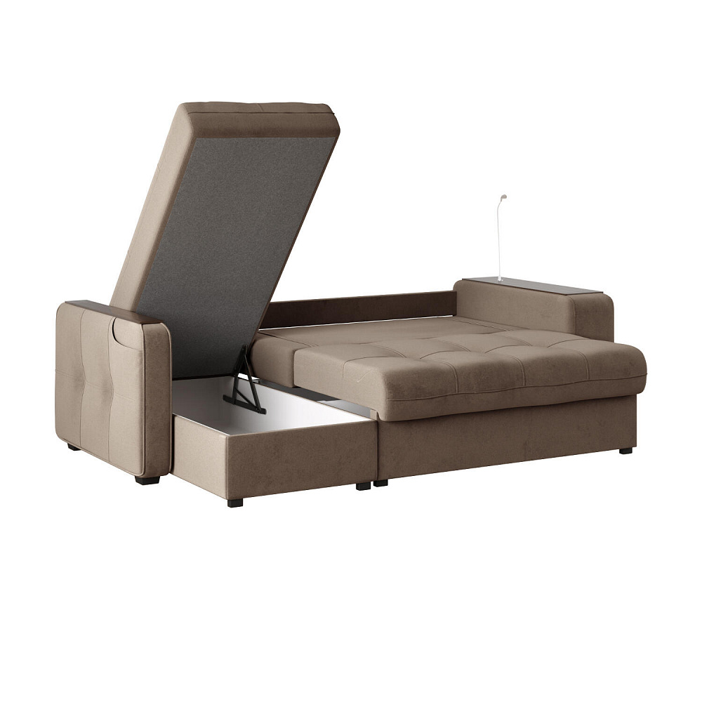 Угловой диван «Киль» подойдёт тем, кто ищет многофункциональную модель для отдыха и работы. Модель со спальным местом отличается технологичными подлокотниками, портативной лампой в комплекте, двумя ящиками для белья и встроенным пуфиком. Вдобавок к большому функционалу диван не перегружен декором, поэтому прекрасно подойдёт к большинству современных интерьеров.