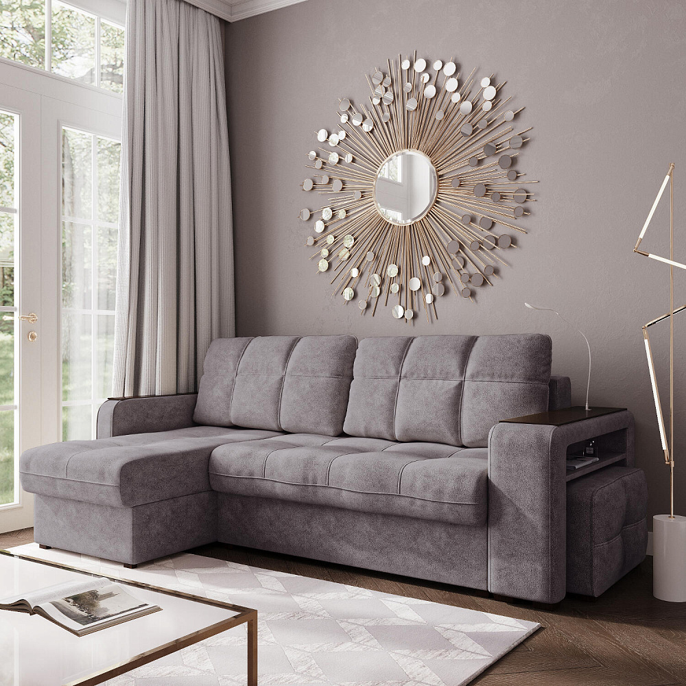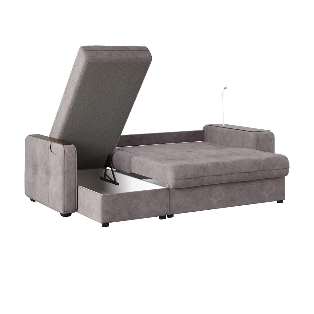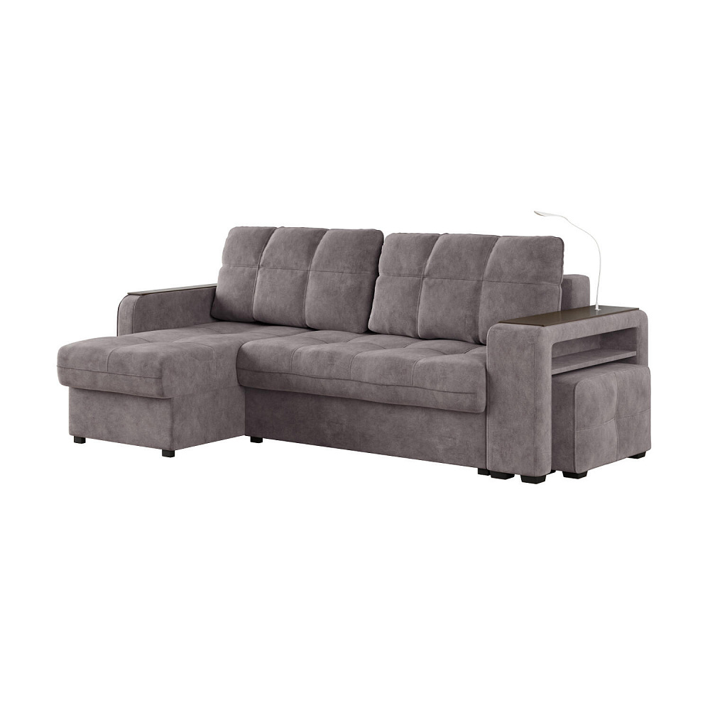 Угловой диван «Киль» подойдёт тем, кто ищет многофункциональную модель для отдыха и работы. Модель со спальным местом отличается технологичными подлокотниками, портативной лампой в комплекте, двумя ящиками для белья и встроенным пуфиком. Вдобавок к большому функционалу диван не перегружен декором, поэтому прекрасно подойдёт к большинству современных интерьеров.