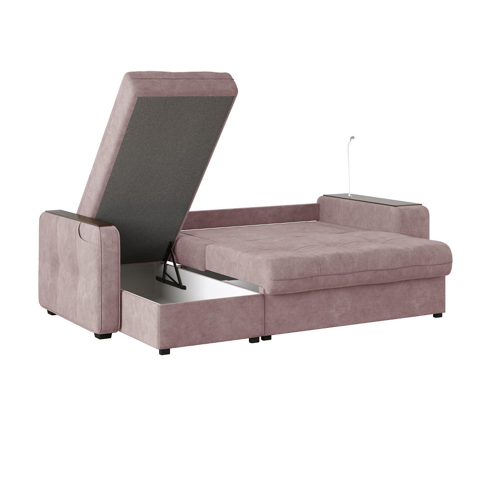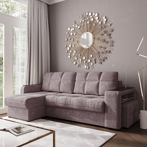 Угловой диван «Киль» подойдёт тем, кто ищет многофункциональную модель для отдыха и работы. Модель со спальным местом отличается технологичными подлокотниками, портативной лампой в комплекте, двумя ящиками для белья и встроенным пуфиком. Вдобавок к большому функционалу диван не перегружен декором, поэтому прекрасно подойдёт к большинству современных интерьеров.