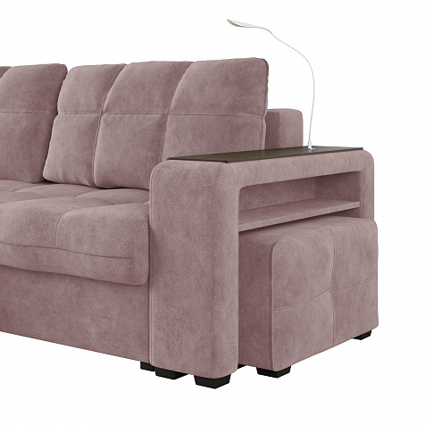 Пуф в комплекте. В корпус более широкого подлокотника встроен пуф. Его можно использовать как дополнительное посадочное место или в качестве подставки под ноги.