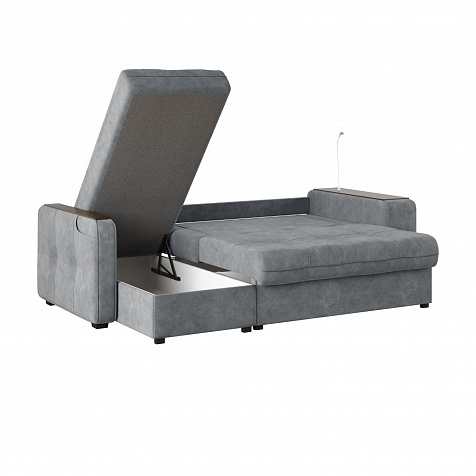 Угловой диван «Киль» подойдёт тем, кто ищет многофункциональную модель для отдыха и работы. Модель со спальным местом отличается технологичными подлокотниками, портативной лампой в комплекте, двумя ящиками для белья и встроенным пуфиком. Вдобавок к большому функционалу диван не перегружен декором, поэтому прекрасно подойдёт к большинству современных интерьеров.