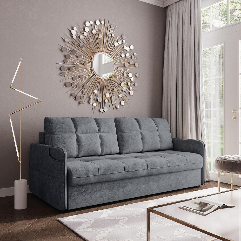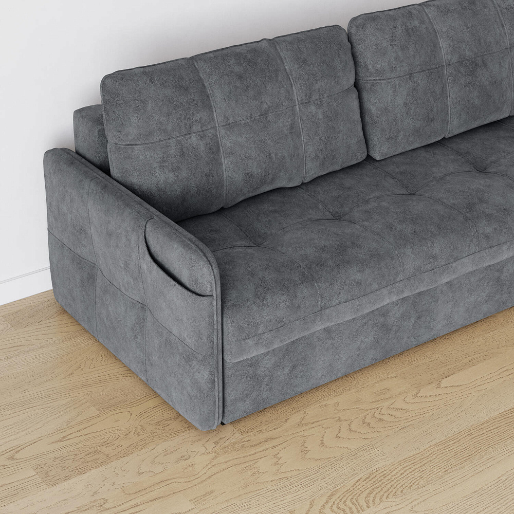 Диван «Киль» с карманом на подлокотнике — идеальный вариант для студий и небольших гостиных, где ценится каждый сантиметр свободного пространства. Модель с широким посадочным местом не займёт много места благодаря узким подлокотникам. Диван не перегружен декором, поэтому подойдёт к большинству современных интерьеров.