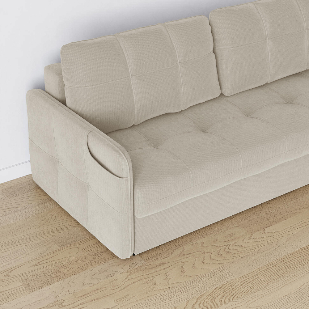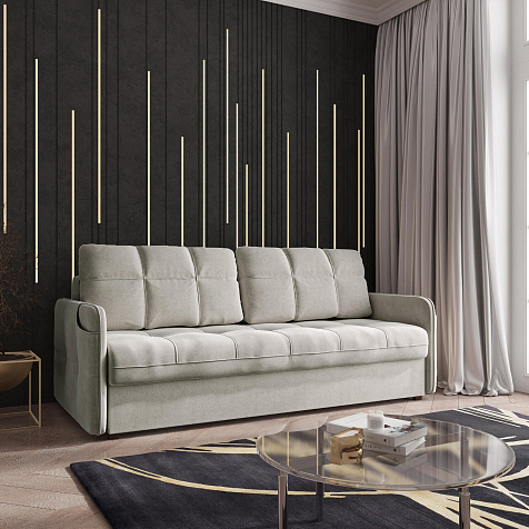 Диван «Киль» с карманом на подлокотнике — идеальный вариант для студий и небольших гостиных, где ценится каждый сантиметр свободного пространства. Модель с широким посадочным местом не займёт много места благодаря узким подлокотникам. Диван не перегружен декором, поэтому подойдёт к большинству современных интерьеров.