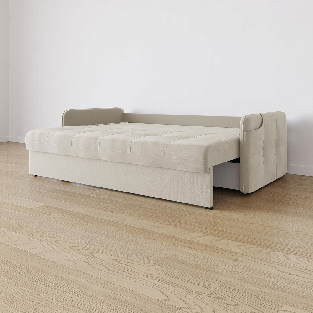 Размер спального места — 200 х 150 см. Полноценная кровать с ровным спальным местом подойдёт для ежедневного сна одного-двух человек.