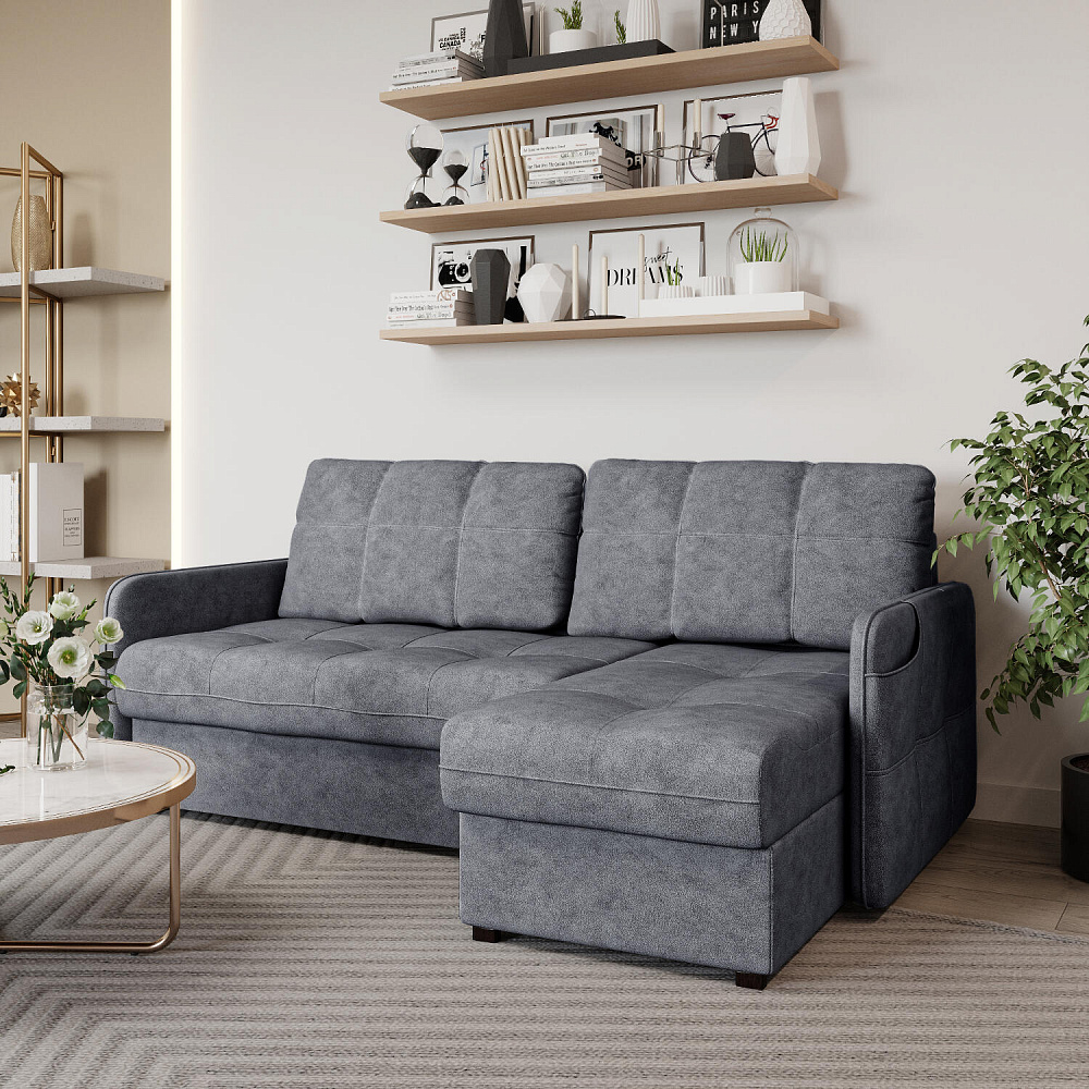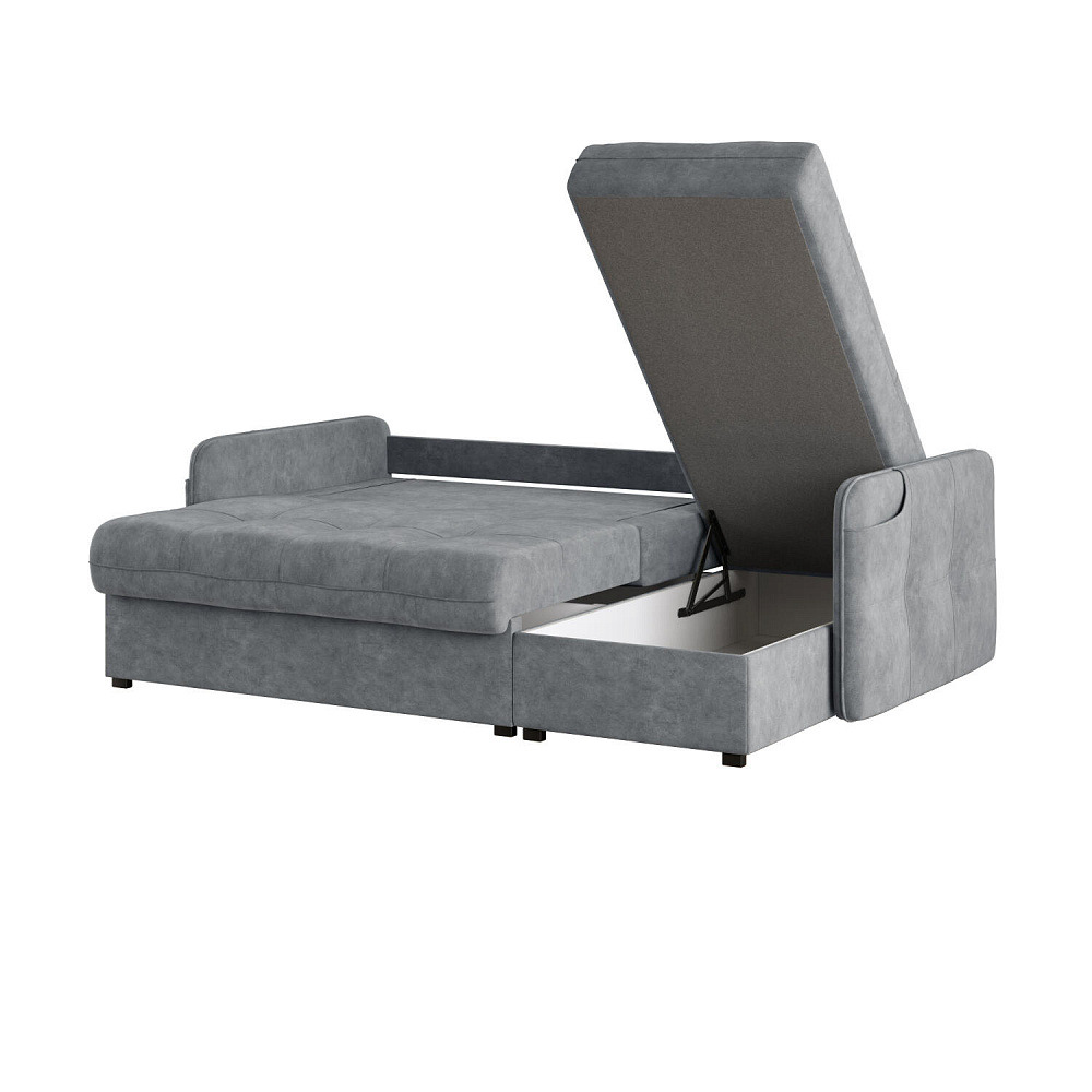 Угловой диван «Киль» с карманом на подлокотнике и двумя ящиками для белья сэкономит пространство в доме. Модель с широким посадочным местом не займёт много места благодаря узким подлокотникам. В двух ящиках можно спрятать много вещей и освободить место в комнате для новых покупок. Диван не перегружен декором, поэтому подойдёт к большинству современных интерьеров.