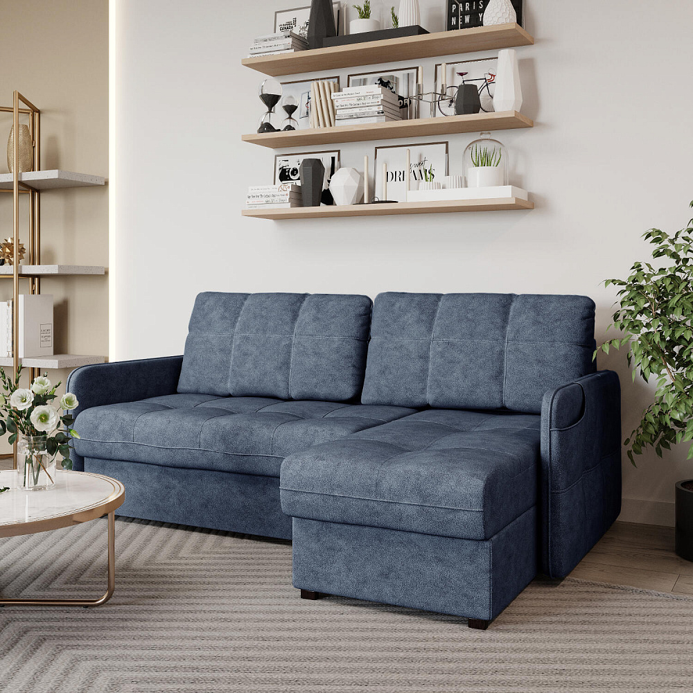 Угловой диван «Киль» с карманом на подлокотнике и двумя ящиками для белья сэкономит пространство в доме. Модель с широким посадочным местом не займёт много места благодаря узким подлокотникам. В двух ящиках можно спрятать много вещей и освободить место в комнате для новых покупок. Диван не перегружен декором, поэтому подойдёт к большинству современных интерьеров.