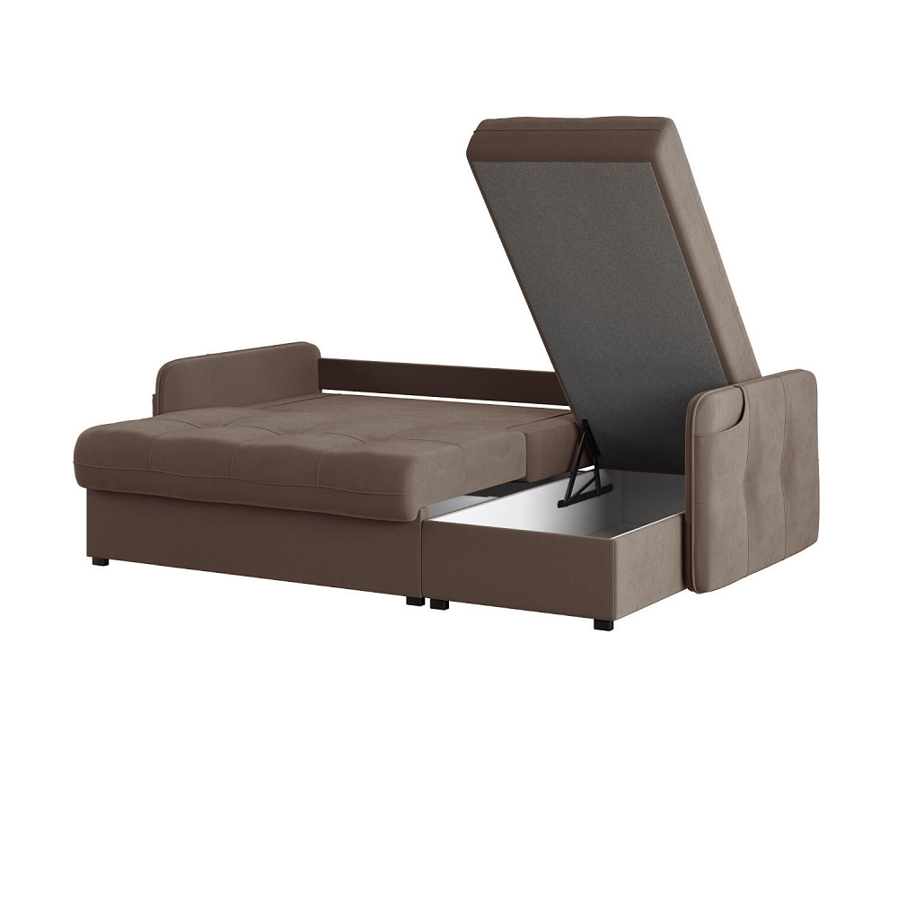 Угловой диван «Киль» с карманом на подлокотнике и двумя ящиками для белья сэкономит пространство в доме. Модель с широким посадочным местом не займёт много места благодаря узким подлокотникам. В двух ящиках можно спрятать много вещей и освободить место в комнате для новых покупок. Диван не перегружен декором, поэтому подойдёт к большинству современных интерьеров.