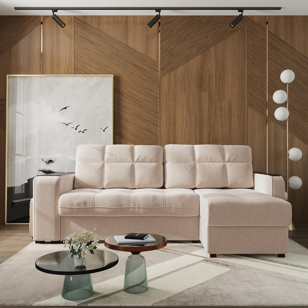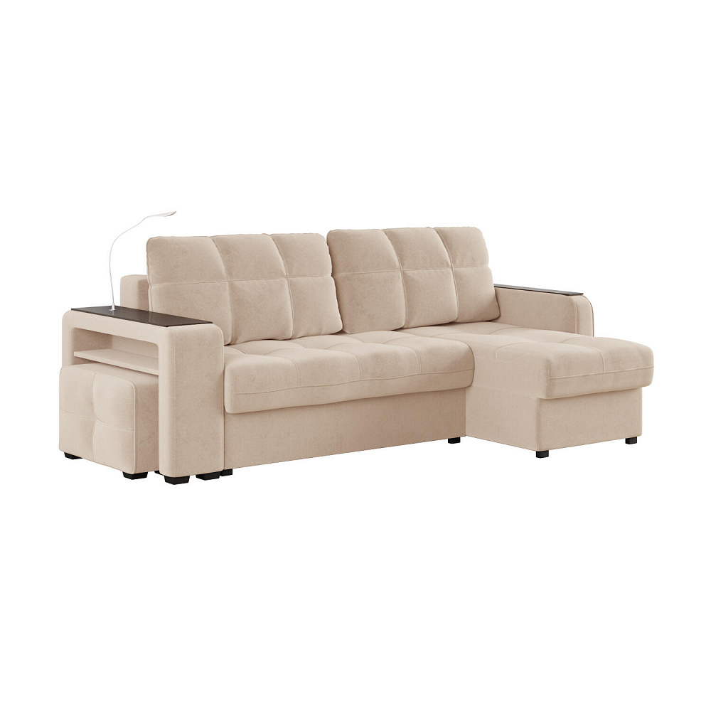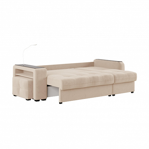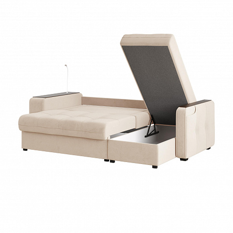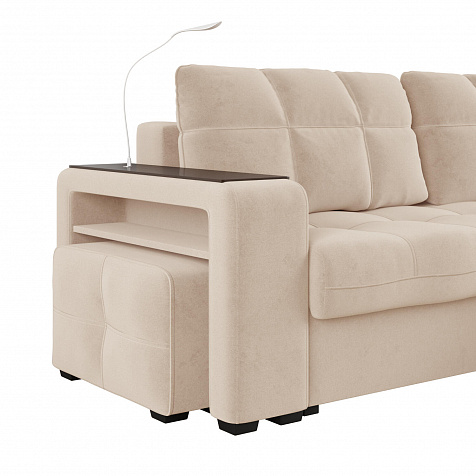 Угловой диван «Киль» подойдёт тем, кто ищет многофункциональную модель для отдыха и работы. Модель со спальным местом отличается технологичными подлокотниками, портативной лампой в комплекте, двумя ящиками для белья и встроенным пуфиком. Вдобавок к большому функционалу диван не перегружен декором, поэтому прекрасно подойдёт к большинству современных интерьеров.