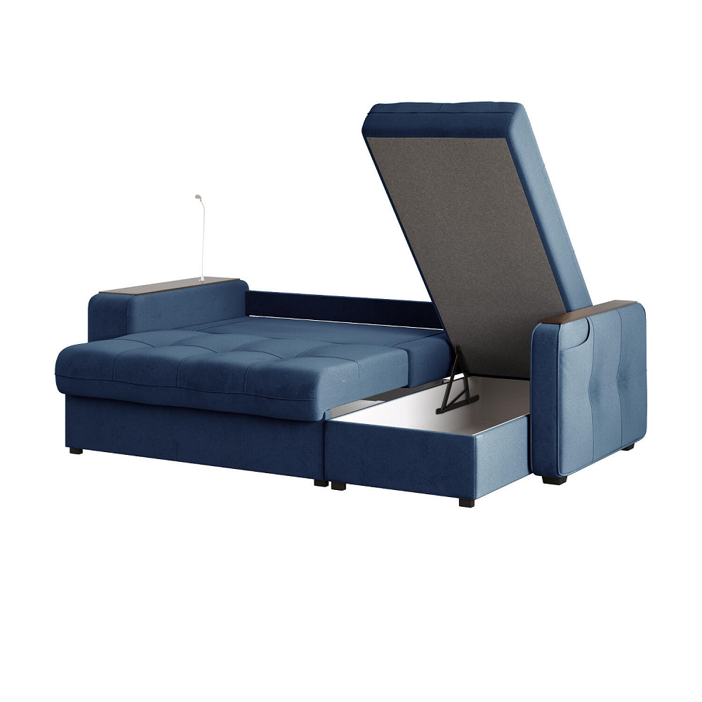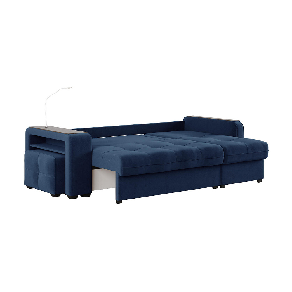 Угловой диван «Киль» подойдёт тем, кто ищет многофункциональную модель для отдыха и работы. Модель со спальным местом отличается технологичными подлокотниками, портативной лампой в комплекте, двумя ящиками для белья и встроенным пуфиком. Вдобавок к большому функционалу диван не перегружен декором, поэтому прекрасно подойдёт к большинству современных интерьеров.