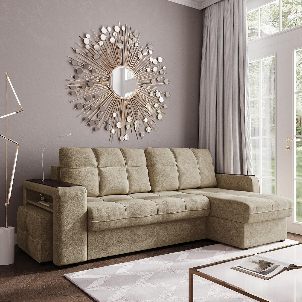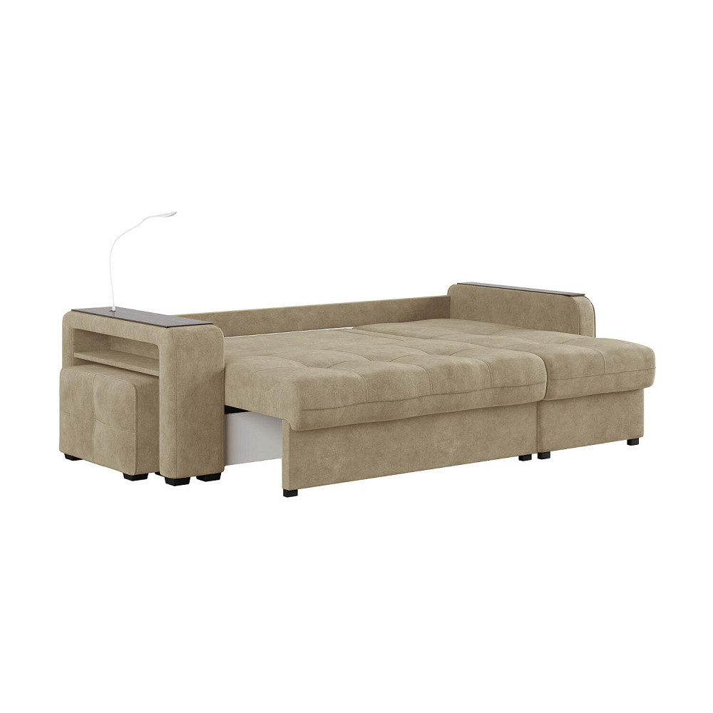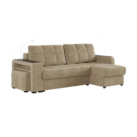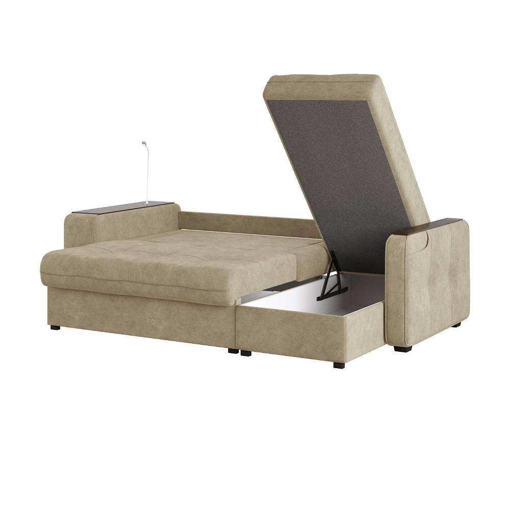 Угловой диван «Киль» подойдёт тем, кто ищет многофункциональную модель для отдыха и работы. Модель со спальным местом отличается технологичными подлокотниками, портативной лампой в комплекте, двумя ящиками для белья и встроенным пуфиком. Вдобавок к большому функционалу диван не перегружен декором, поэтому прекрасно подойдёт к большинству современных интерьеров.