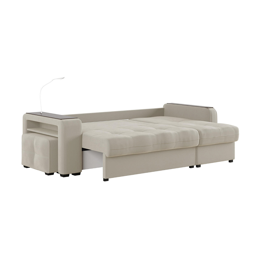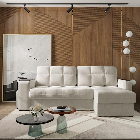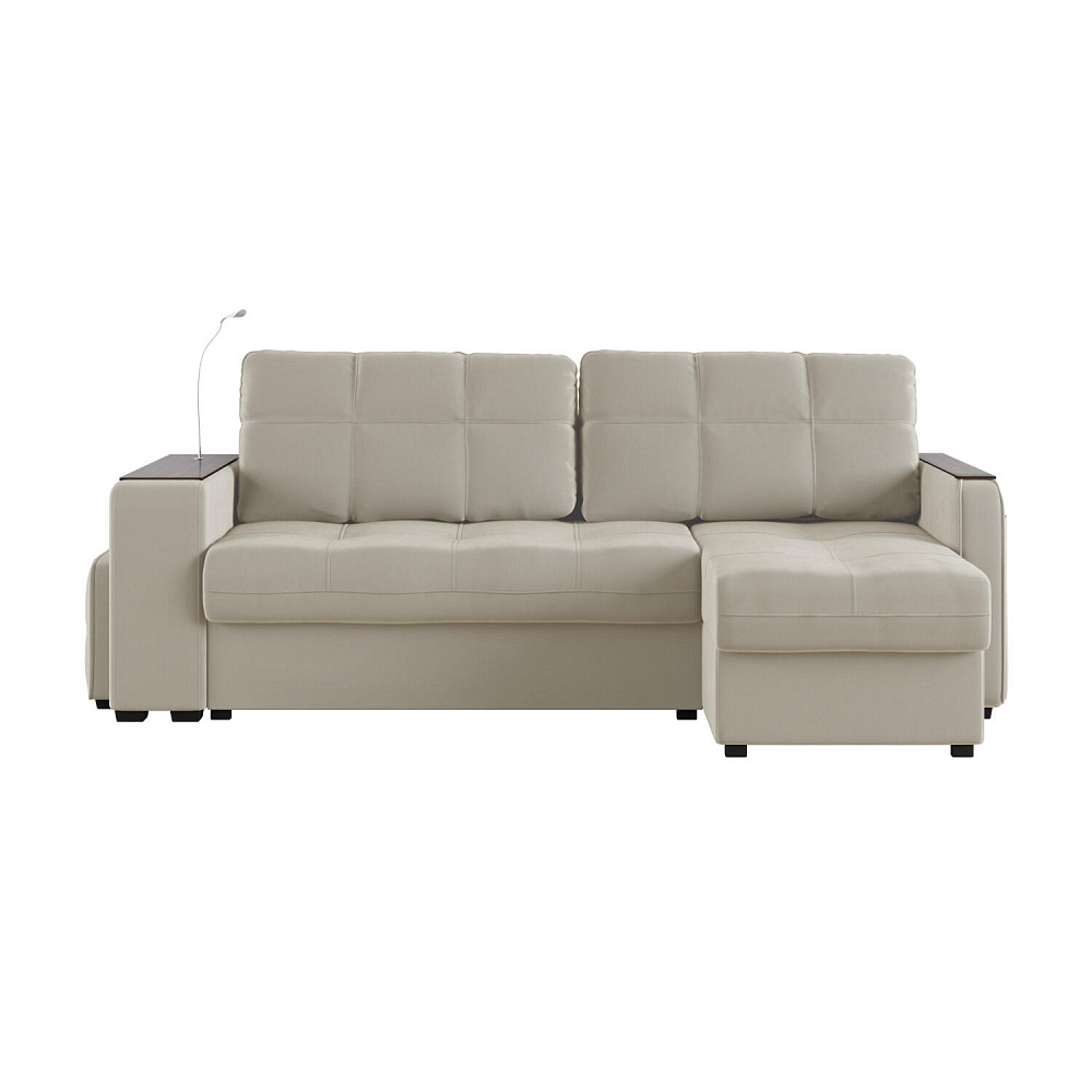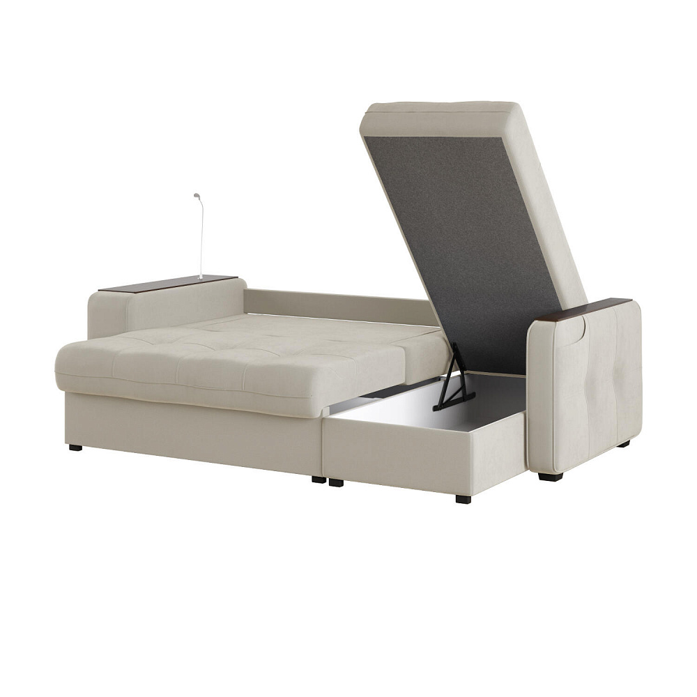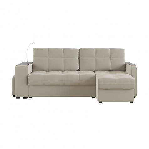 Угловой диван «Киль» подойдёт тем, кто ищет многофункциональную модель для отдыха и работы. Модель со спальным местом отличается технологичными подлокотниками, портативной лампой в комплекте, двумя ящиками для белья и встроенным пуфиком. Вдобавок к большому функционалу диван не перегружен декором, поэтому прекрасно подойдёт к большинству современных интерьеров.