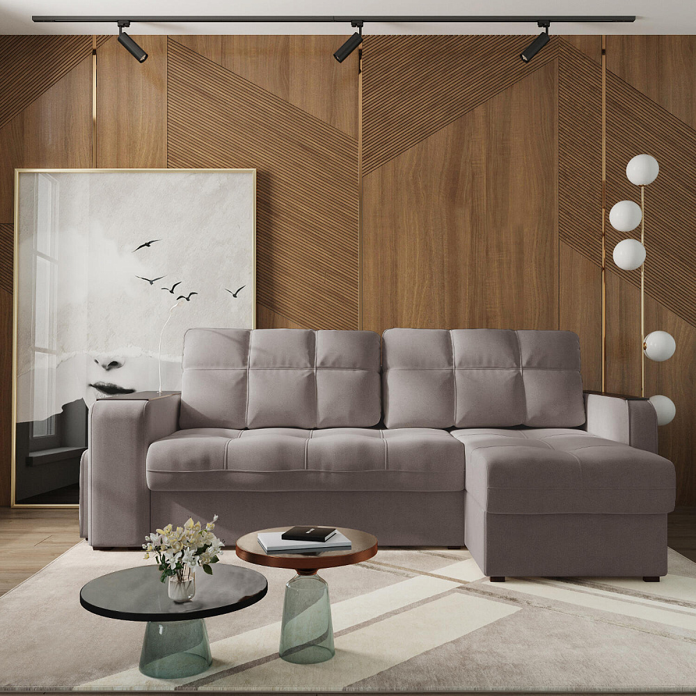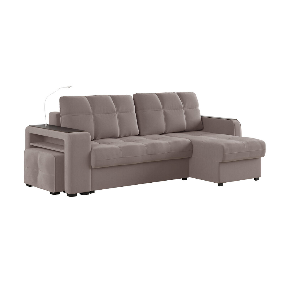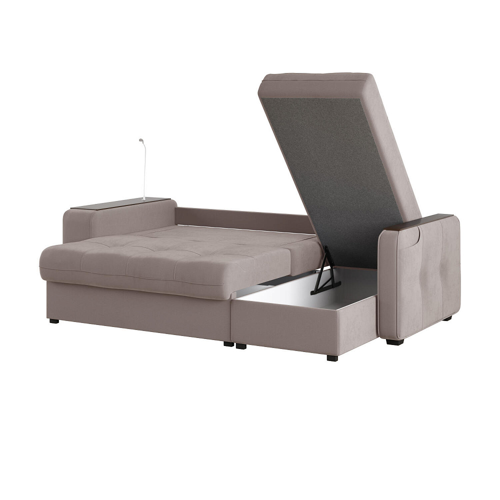 Угловой диван «Киль» подойдёт тем, кто ищет многофункциональную модель для отдыха и работы. Модель со спальным местом отличается технологичными подлокотниками, портативной лампой в комплекте, двумя ящиками для белья и встроенным пуфиком. Вдобавок к большому функционалу диван не перегружен декором, поэтому прекрасно подойдёт к большинству современных интерьеров.