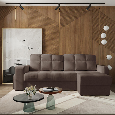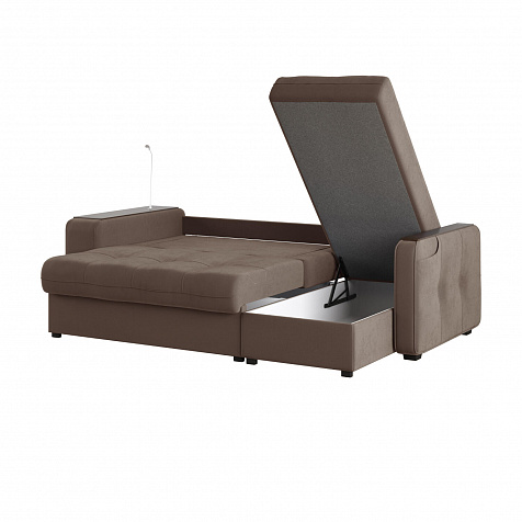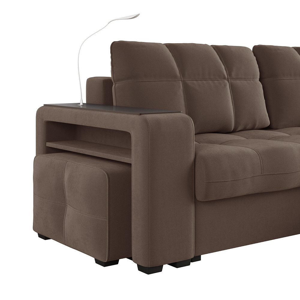 Угловой диван «Киль» подойдёт тем, кто ищет многофункциональную модель для отдыха и работы. Модель со спальным местом отличается технологичными подлокотниками, портативной лампой в комплекте, двумя ящиками для белья и встроенным пуфиком. Вдобавок к большому функционалу диван не перегружен декором, поэтому прекрасно подойдёт к большинству современных интерьеров.