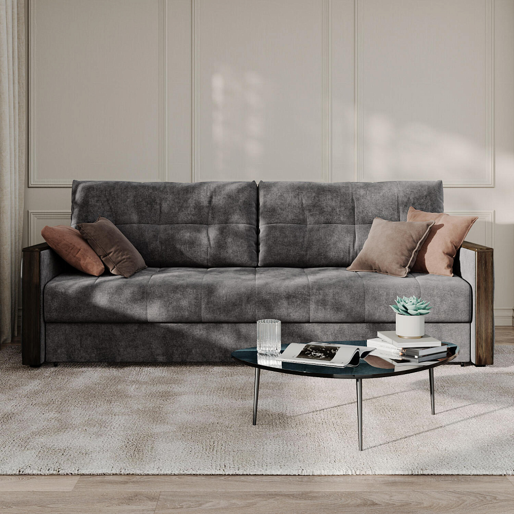 Диван «Винг» объединяет строгие геометрические формы и мягкую воздушность. Механизм трансформации «Еврокнижка» в сложенном виде позволяет сэкономить пространство в комнате, в разложенном - обеспечивает комфортное и ровное спальное место. Спинка дивана выполнена в той же обивке, что и основная часть, что даёт возможность использовать диван для зонирования комнаты. Горизонтальную поверхность на подлокотниках можно использовать в качестве мини-столешницы для небольших предметов.