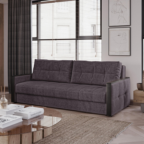Диван «Винг» объединяет строгие геометрические формы и мягкую воздушность. Механизм трансформации «Еврокнижка» в сложенном виде позволяет сэкономить пространство в комнате, в разложенном - обеспечивает комфортное и ровное спальное место. Спинка дивана выполнена в той же обивке, что и основная часть, что даёт возможность использовать диван для зонирования комнаты. Горизонтальную поверхность на подлокотниках можно использовать в качестве мини-столешницы для небольших предметов.