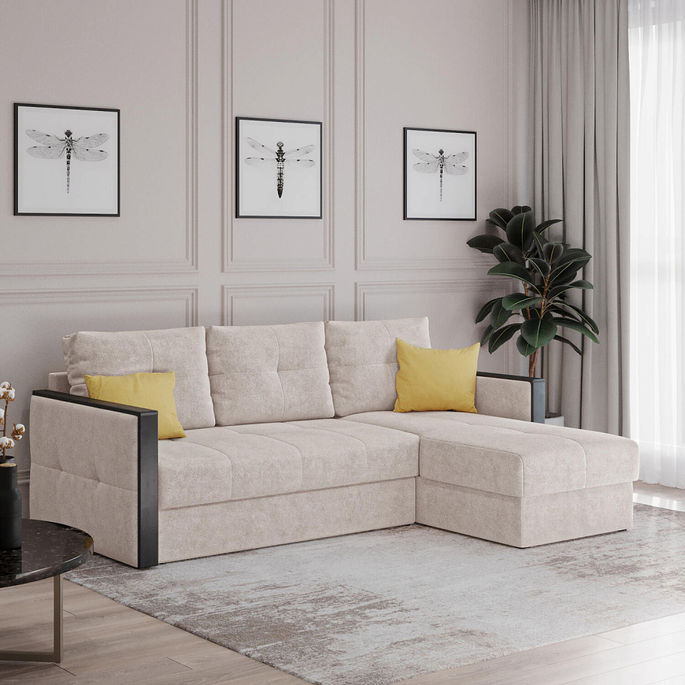 Диван угловой «Винг» объединяет строгие геометрические формы и мягкую воздушность. Механизм трансформации «Дельфин» в сложенном виде позволяет сэкономить пространство в комнате, в разложенном - обеспечивает комфортное и ровное спальное место. Спинка дивана выполнена в той же обивке, что и основная часть, что даёт возможность использовать диван для зонирования комнаты. Горизонтальную поверхность на подлокотниках можно использовать в качестве мини-столешницы для небольших предметов.