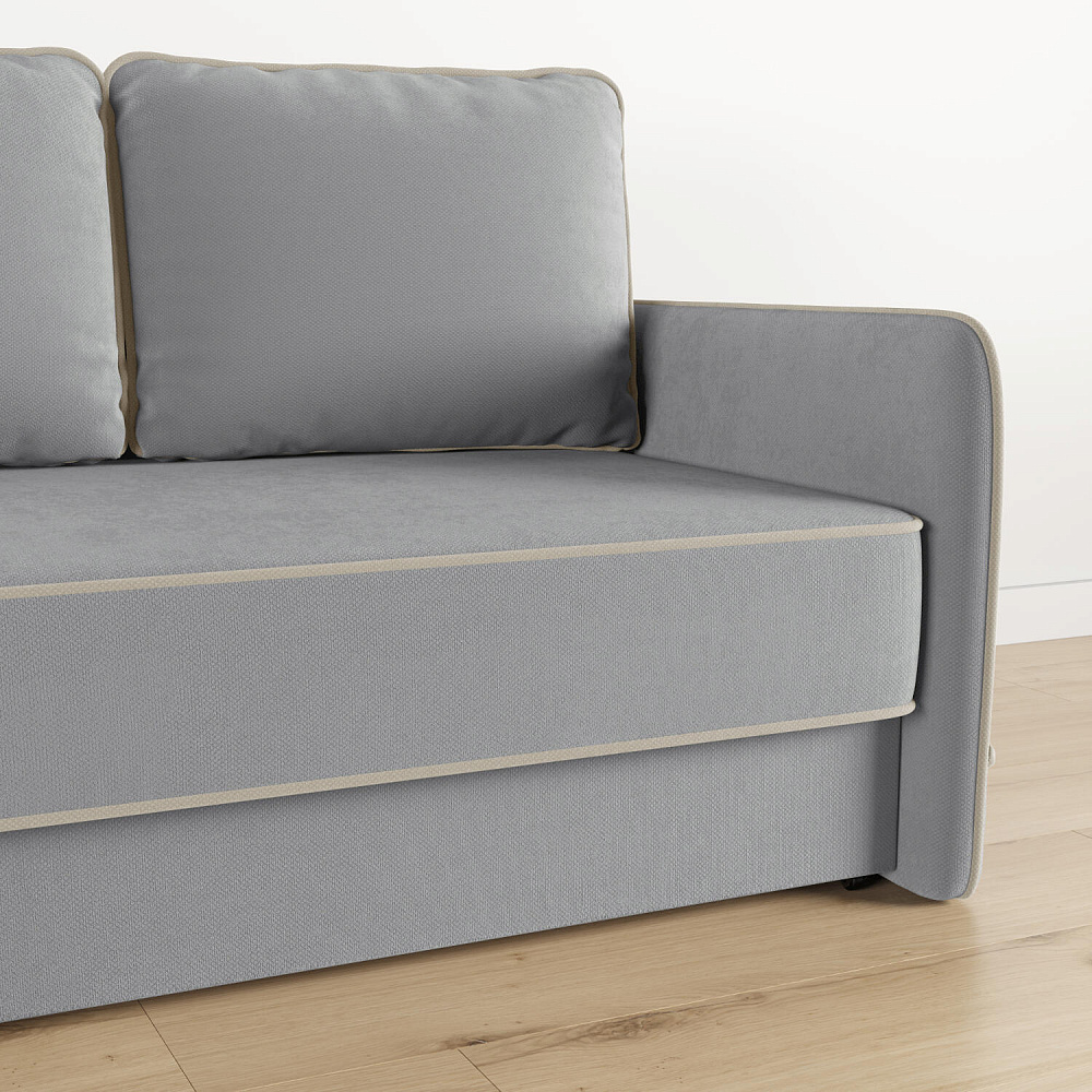 Диван «Симпл» станет стильным акцентом в современной гостиной. Контрастный кант на обивке из мягкого велюра придаёт дизайну дивана завершённый вид и подчёркивает мягкую геометричность. Механизм трансформации «Еврокнижка» в сложенном виде позволяет сэкономить пространство в комнате, в разложенном — обеспечивает комфортное и ровное спальное место. Спинка дивана выполнена в той же обивке, что и основная часть, что даёт возможность использовать диван для зонирования комнаты.