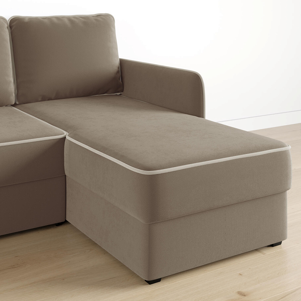 - Универсальный угол. Диван подстроится под условия помещения — оттоманка устанавливается как слева, так и справа.