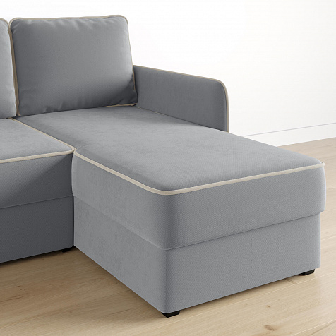 - Универсальный угол. Диван подстроится под условия помещения — оттоманка устанавливается как слева, так и справа.