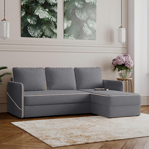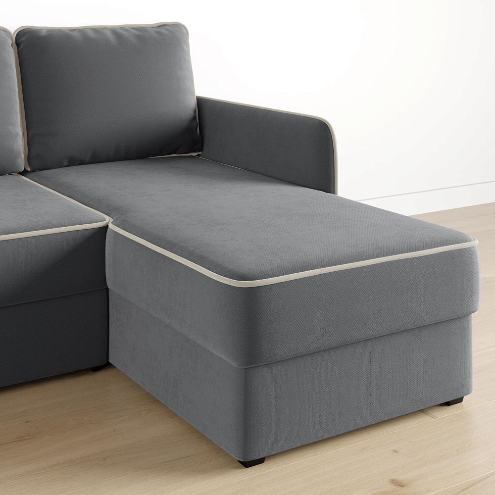 - Универсальный угол. Диван подстроится под условия помещения — оттоманка устанавливается как слева, так и справа.
