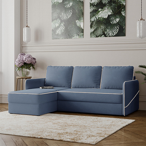 - Универсальный угол. Диван подстроится под условия помещения — оттоманка устанавливается как слева, так и справа.