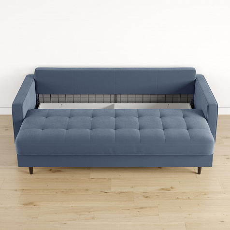 - Легкая уборка под диваном. Высокие опоры позволяют сохранять чистоту, в том числе и с помощью робота-пылесоса.