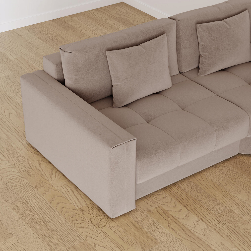 Диван «Дензел» — лучший вариант для ценителей комфорта и удобства в сочетании со стильным дизайном. Диван обладает глубокой посадкой, а приспинные и декоративные подушки позволят создать удобное место для отдыха. Угловая модель с оттоманкой займёт своё идеальное место даже в небольшом пространстве. Спинка модели выполнена в обивочной ткани, что даёт возможность использовать диван для зонирования комнаты.