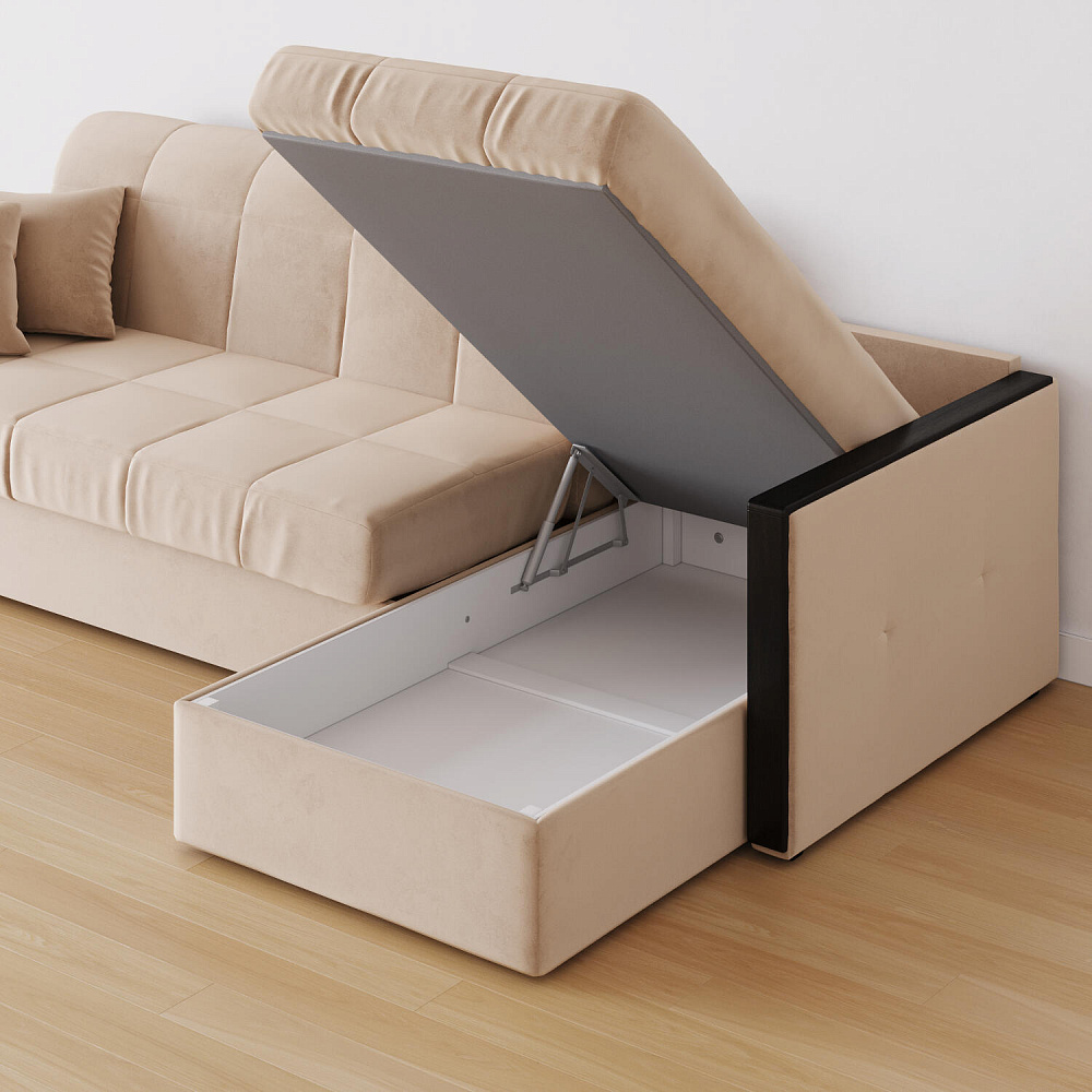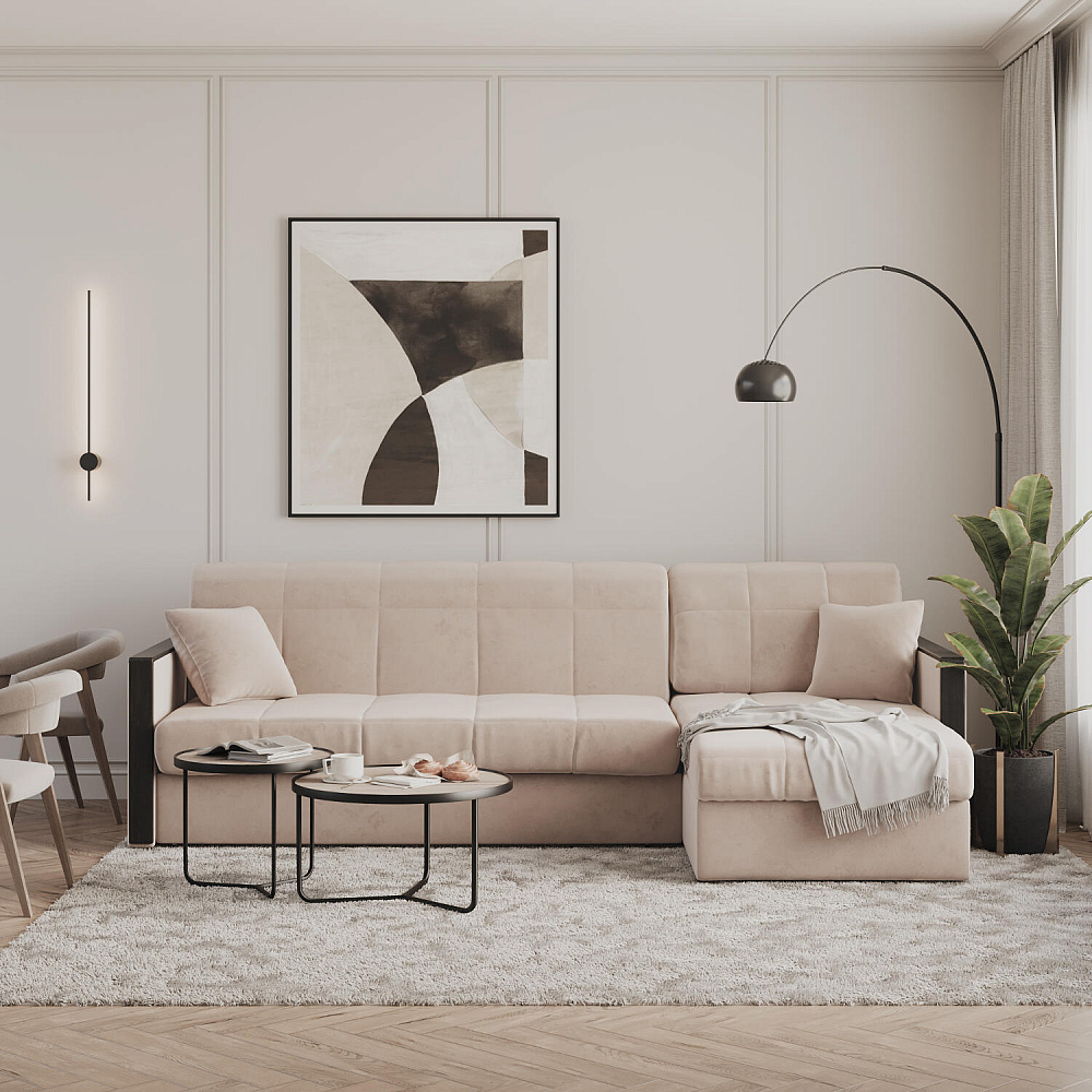 Угловой диван «Бристоль» с оттоманкой сделает отдых ещё удобнее. Модель оснащена накладками на подлокотниках, на которые удобно положить ТВ-пульт или смартфон. В оттоманке находится вместительный отсек для постельного белья и других вещей. Благодаря механизму трансформации «Аккордеон» диван легко превращается в полноценную кровать для двух человек. Пропорциональные формы, плавные линии декоративного канта подчеркивают лаконичный дизайн, поэтому диван подойдет для любого современного интерьера.