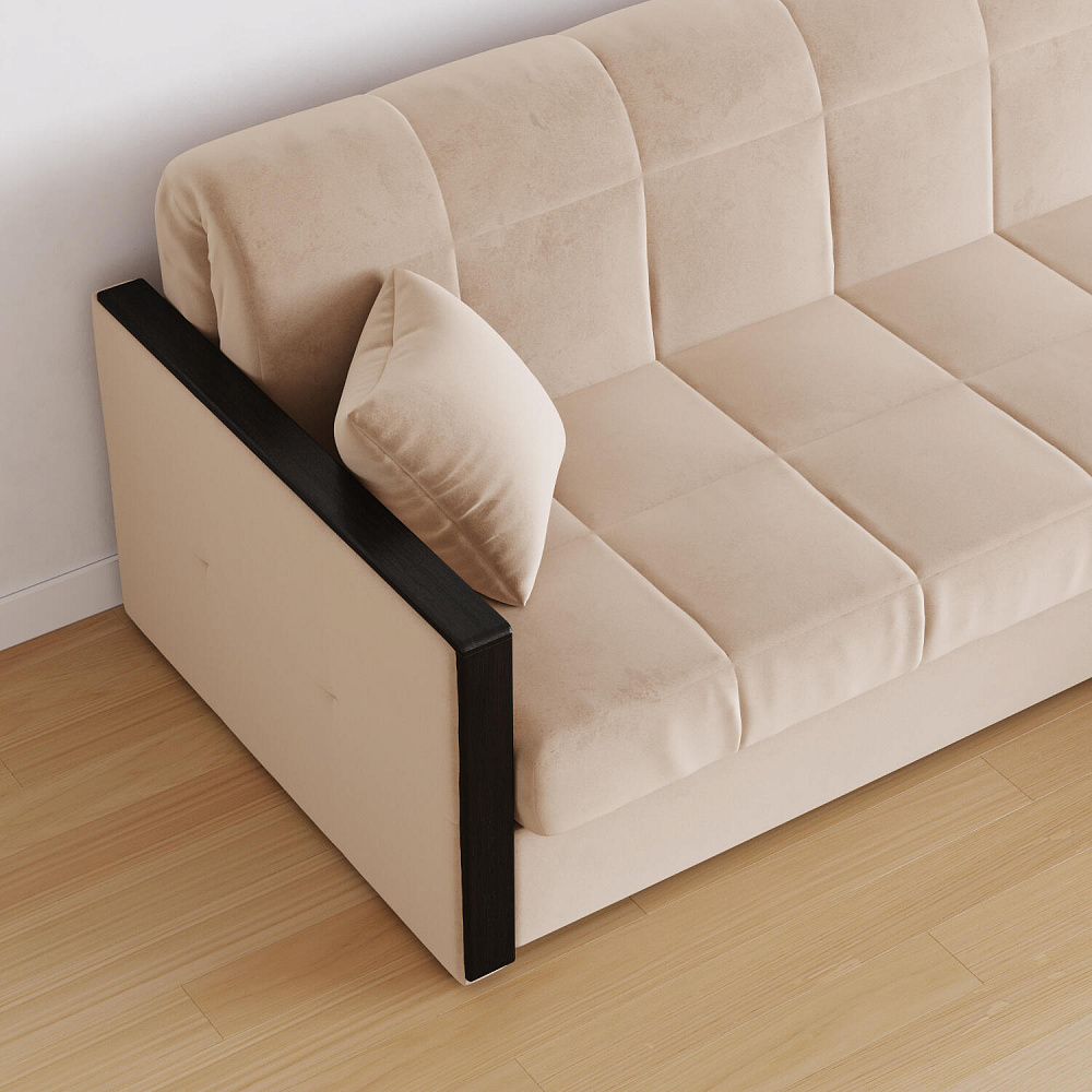 Механизм трансформации «Аккордеон». Чтобы разложить диван, необходимо приподнять сиденье и слегка потянуть на себя, далее диван разложится сам. Поверхность спального места ровная, без петель и швов, поэтому сон будет приятным и комфортным. Прорезиненные ролики защитят напольное покрытие от истирания.