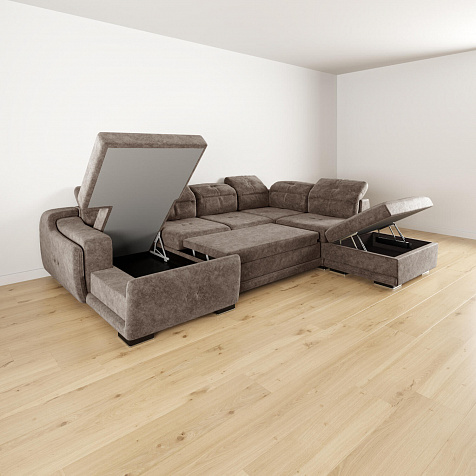 - Два короба для белья в оттоманке и пуфе оснащены подъёмными механизмами газлифт, которые закрыты специальным чехлом, защищая тем самым постельное бельё.