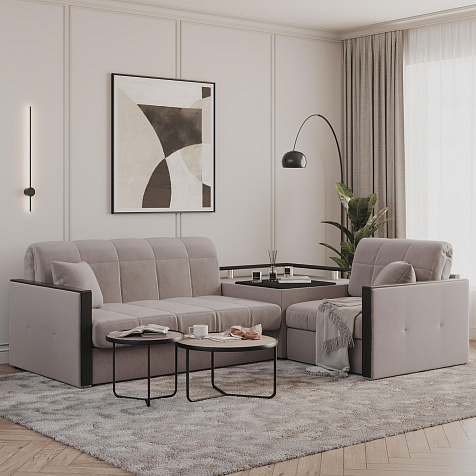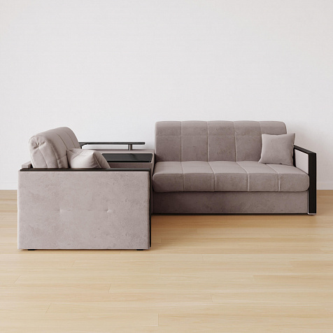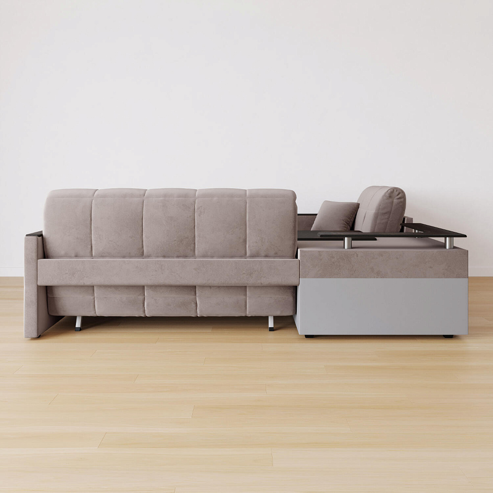Угловой диван «Бристоль» с баром станет главным местом для отдыха и приема гостей. Модель оснащена баром, на котором можно расположить еду и напитки во время просмотра фильмов и сериалов. Вместительный короб и ящик для постельных принадлежностей. Благодаря механизму трансформации «Аккордеон» диван легко превращается в полноценную кровать для одного-двух человек. Пропорциональные формы, плавные линии декоративного канта подчеркивают лаконичный дизайн, поэтому диван подойдет для любого современного интерьера.