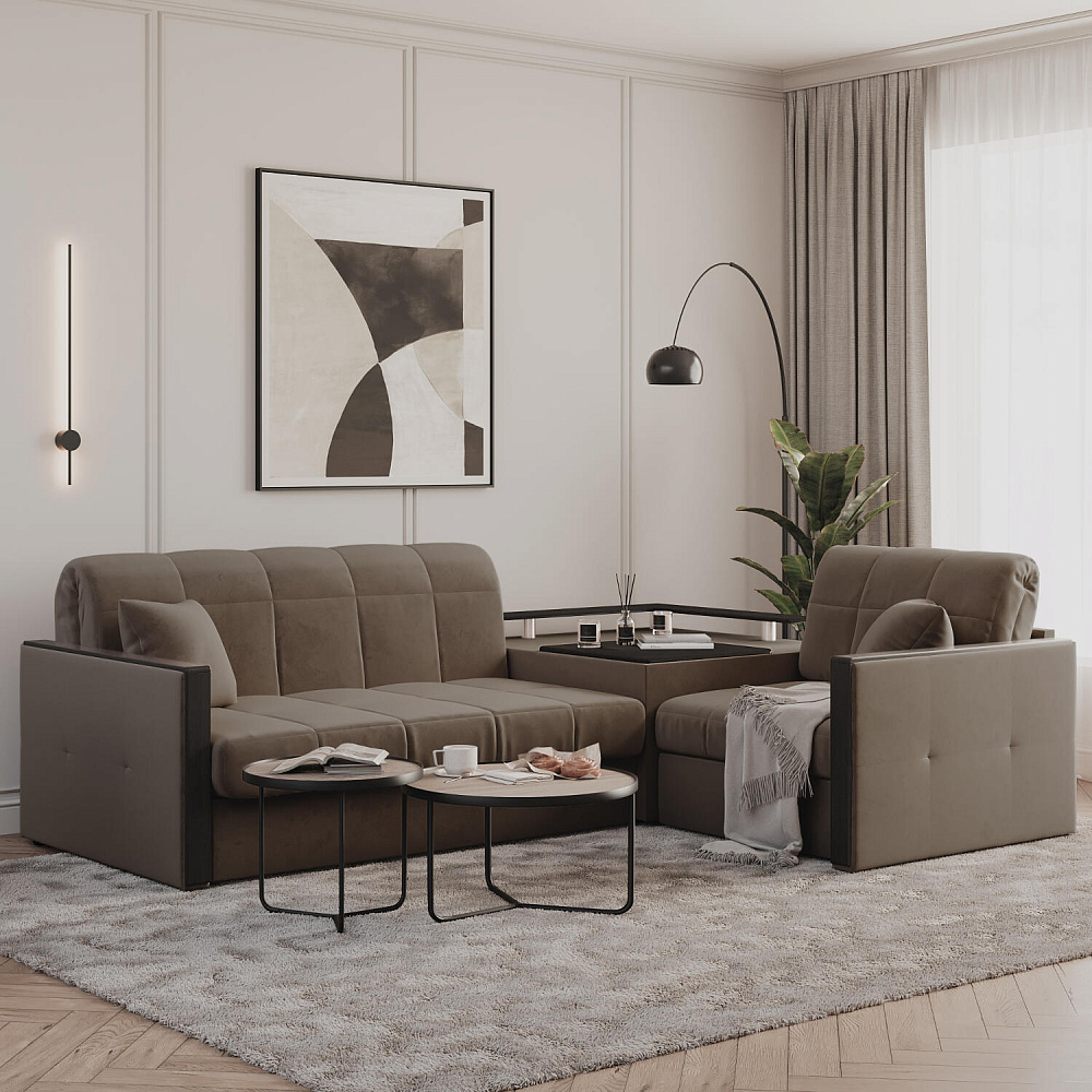 Универсальный угол. Диван подстроится под условия помещения — бар устанавливается как слева, так и справа.