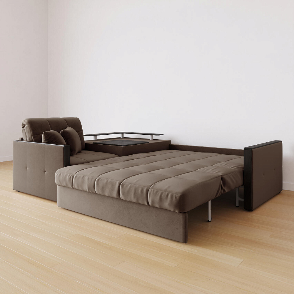 Размер спального места — 147 х 200 см. Диван легко трансформируется в двуспальную кровать, на которой смогут расположиться и с комфортом выспаться один-два человека.