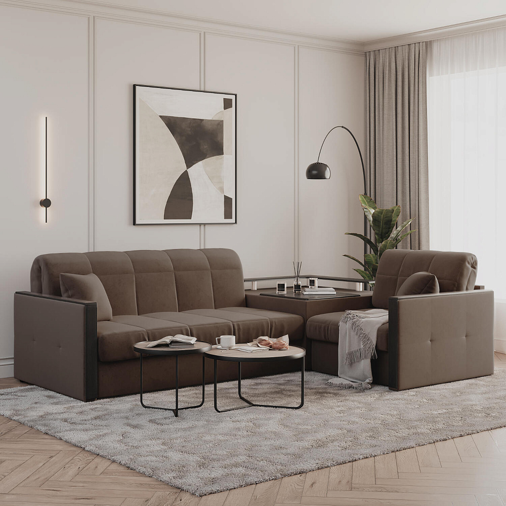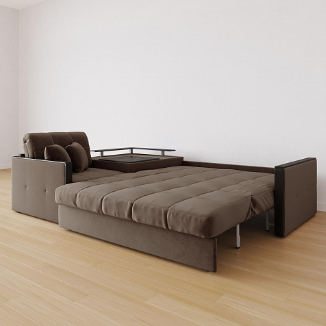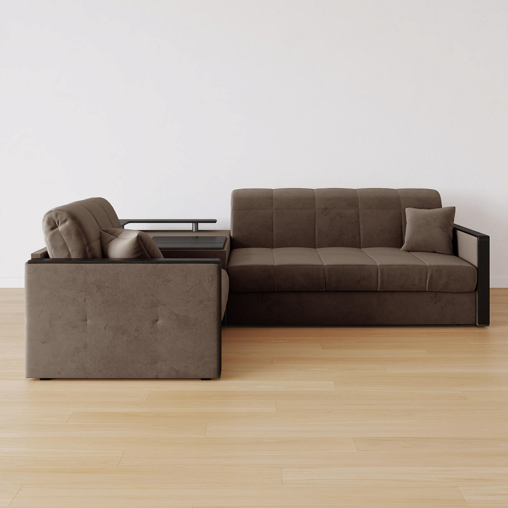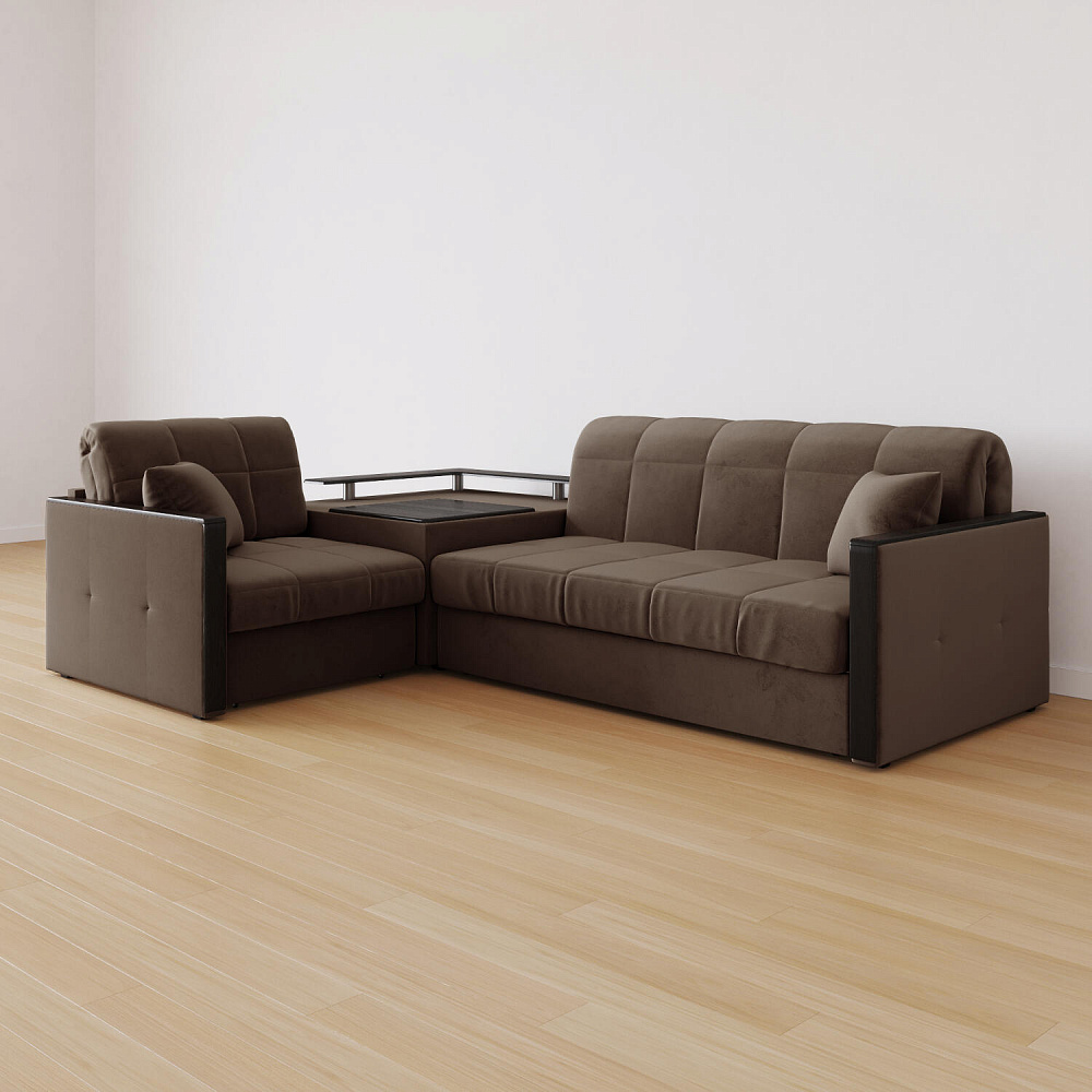 Угловой диван «Бристоль» с баром станет главным местом для отдыха и приема гостей. Модель оснащена баром, на котором можно расположить еду и напитки во время просмотра фильмов и сериалов. Вместительный короб и ящик для постельных принадлежностей. Благодаря механизму трансформации «Аккордеон» диван легко превращается в полноценную кровать для двух человек. Пропорциональные формы, плавные линии декоративного канта подчеркивают лаконичный дизайн, поэтому диван подойдет для любого современного интерьера.