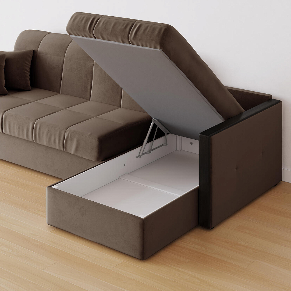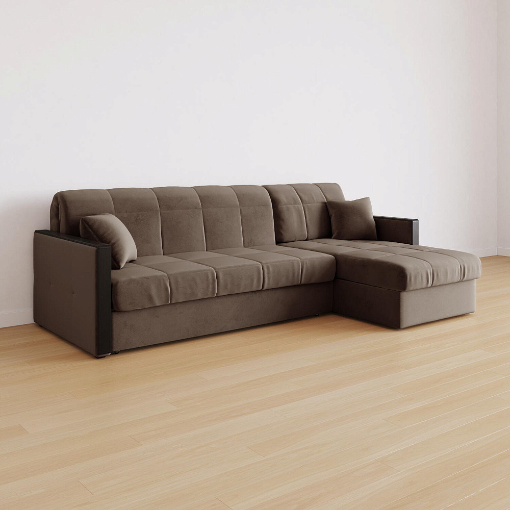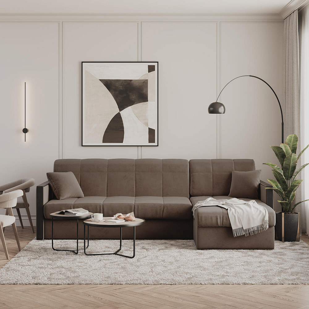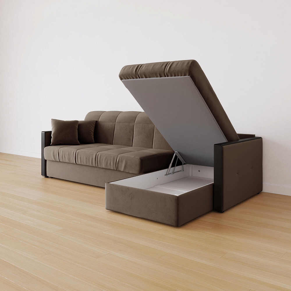 Угловой диван «Бристоль» с оттоманкой сделает отдых ещё удобнее. Модель оснащена накладками на подлокотниках, на которые удобно положить ТВ-пульт или смартфон. В оттоманке находится вместительный отсек для постельного белья и других вещей. Благодаря механизму трансформации «Аккордеон» диван легко превращается в полноценную кровать для двух человек. Пропорциональные формы, плавные линии декоративного канта подчеркивают лаконичный дизайн, поэтому диван подойдет для любого современного интерьера.