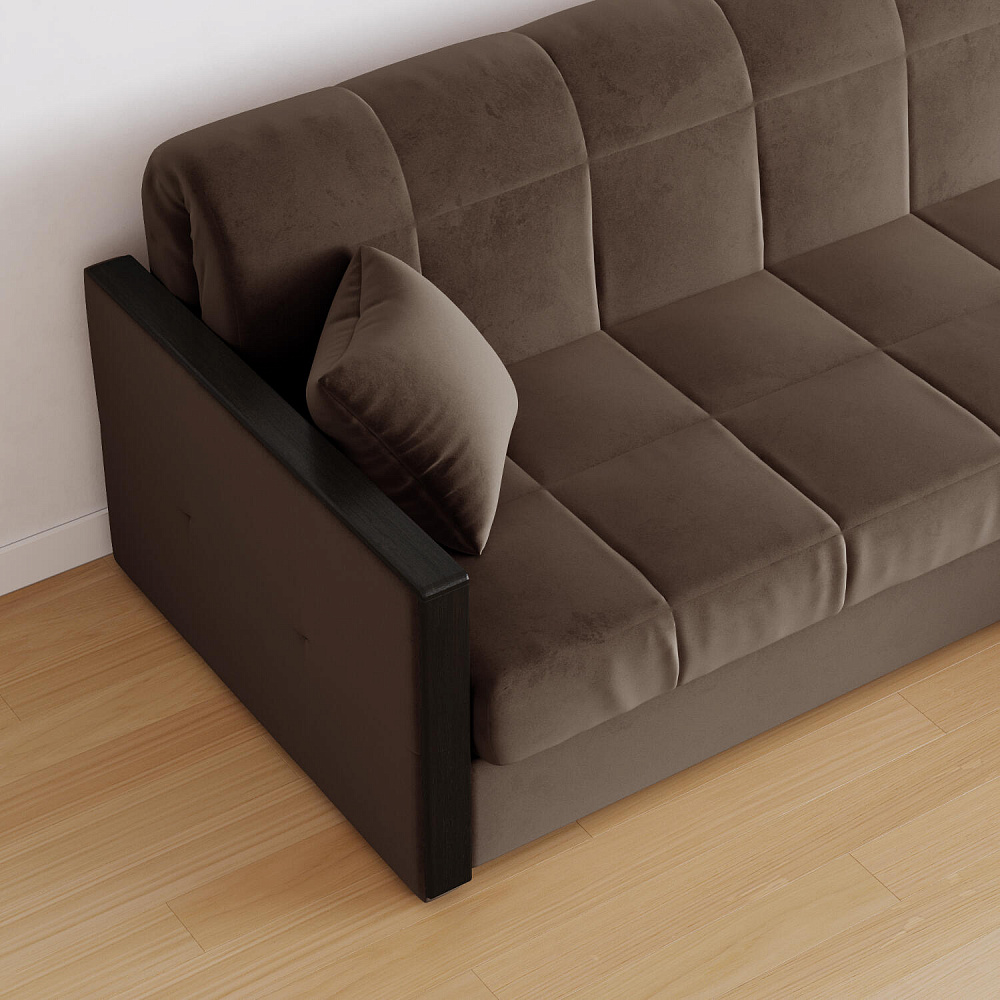 Механизм трансформации «Аккордеон». Чтобы разложить диван, необходимо приподнять сиденье и слегка потянуть на себя, далее диван разложится сам. Поверхность спального места ровная, без петель и швов, поэтому сон будет приятным и комфортным. Прорезиненные ролики защитят напольное покрытие от истирания.