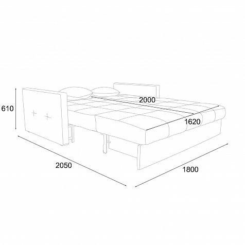 Диван в разложенном виде: 61 х 180 х 205 см.