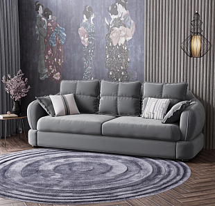 Механизм трансформации «Аккордеон». Чтобы разложить диван, необходимо приподнять сиденье и слегка потянуть на себя, далее диван разложится сам. Поверхность спального места ровная, без петель и швов, поэтому сон будет приятным и комфортным. Прорезиненные ролики защитят напольное покрытие от истирания.