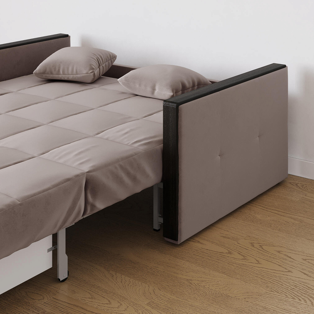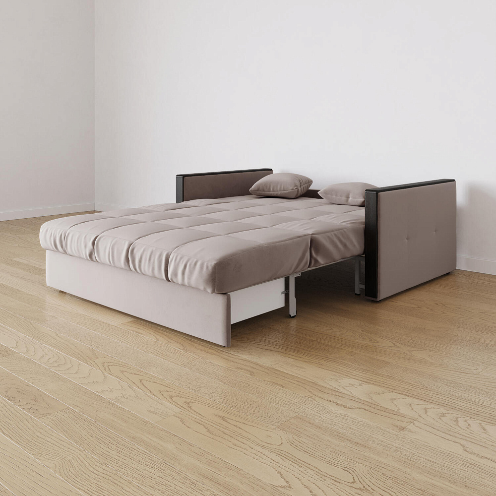 Механизм трансформации «Аккордеон». Чтобы разложить диван, необходимо приподнять сиденье и слегка потянуть на себя, далее диван разложится сам. Поверхность спального места ровная, без петель и швов, поэтому сон будет приятным и комфортным. Прорезиненные ролики защитят напольное покрытие от истирания.
